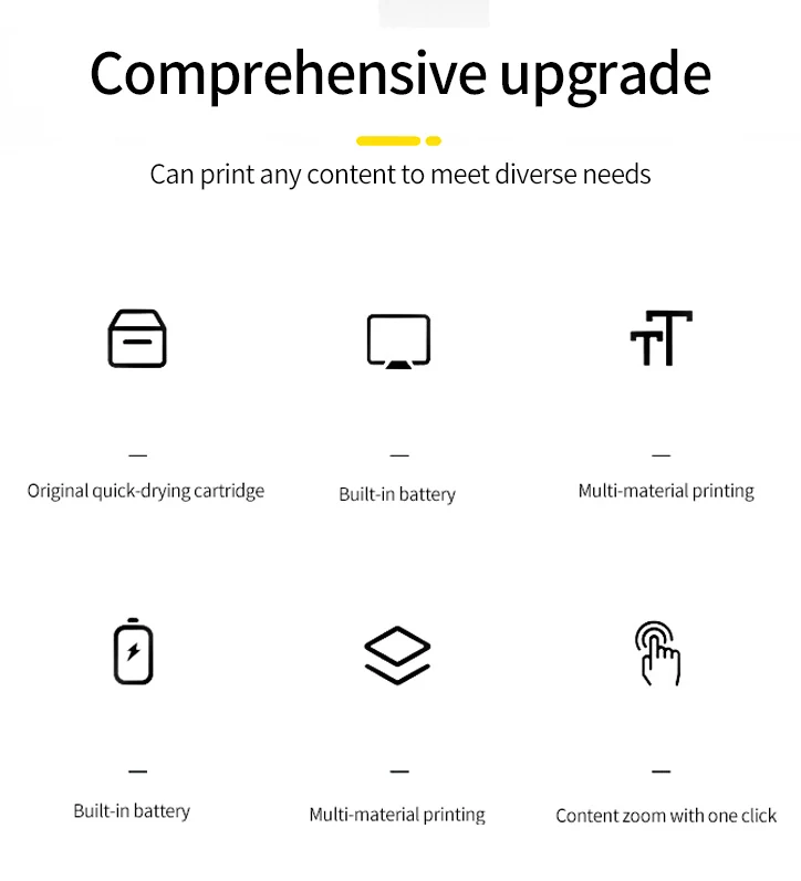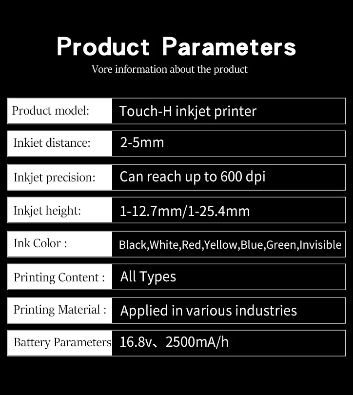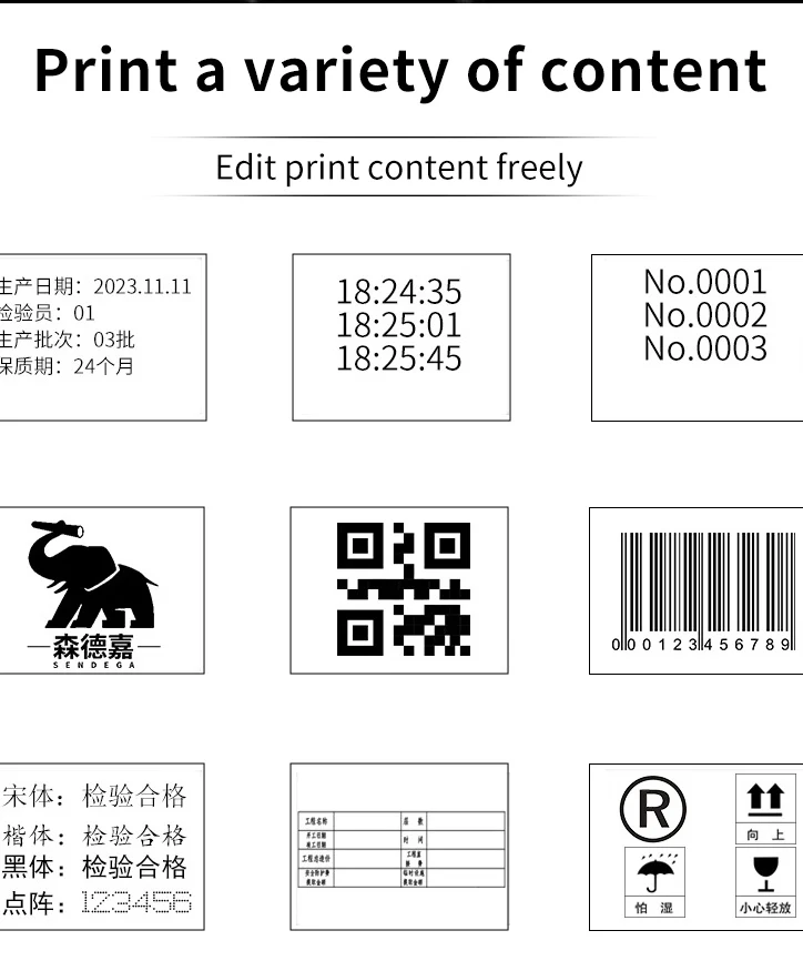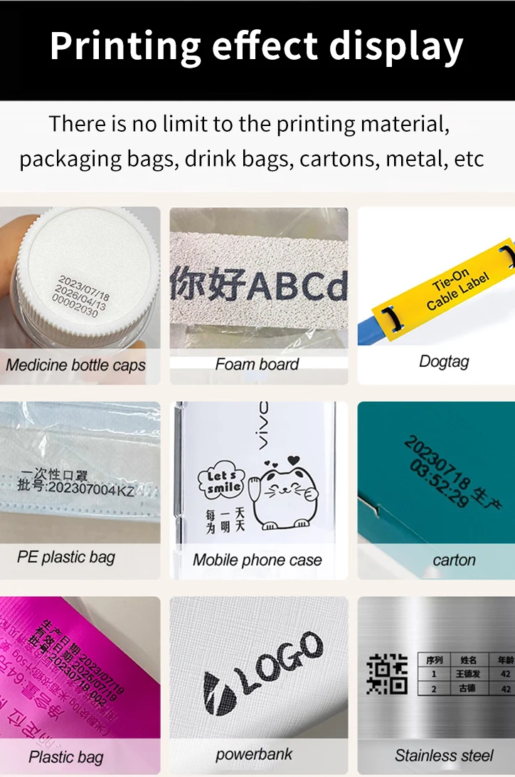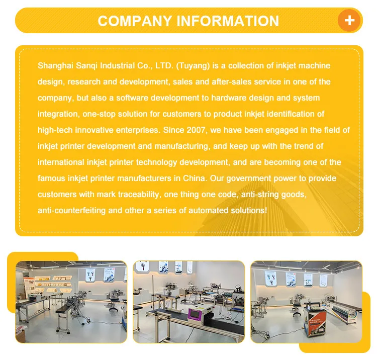 Q1. What content can this machine print? Can my product be sprayed like this?Answer: We have multiple types of machines that are suitable for different materials and shapes of products. We have water-based ink and oil-based quick drying ink that can meet the needs of the vast majority of materials,It can print barcodes, QR codes, variable serial numbers, one item one code, EXP dates, micro labels, etc.Q2. Can it be wiped off after spraying?Answer: After spraying, it cannot be wiped off unless deliberately scraped with a hard physical object.Q3. How long does it take for the ink to dry?Answer: 2-3 seconds.Q4. How can we guarantee that your machine runs well?Answer: Before delivery, we have tested each machine and adjusted it to its optimal state. If you have special production conditions,We can also adjust the machine for you. If you encounter any machine malfunction problems, please contact our professional after-sales personnel as soon as possible to handle them for you.Q5. Can you deliver the machine to my address?Yes, we can use DHL express machines. And the transportation cost will be higher. In addition, it is suitable for small models.Q6. Where are you? Can we visit your factory in China?Yes, of course. We are in Shanghai, China. Welcome to our factory.Q7: Do you have a manual for your machine?Yes, of course. It is the English version.Q8: Do you have any other colors of ink?Answer: Yes, we have white, yellow, red, green, blue, and black colors for you to choose from.
