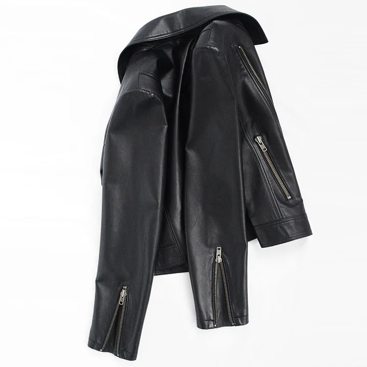 Designer Fashion Womens Jacket Chaquetas Mujer 2023 Black Genuine Sheepskin Leather Coat Jacket for Women