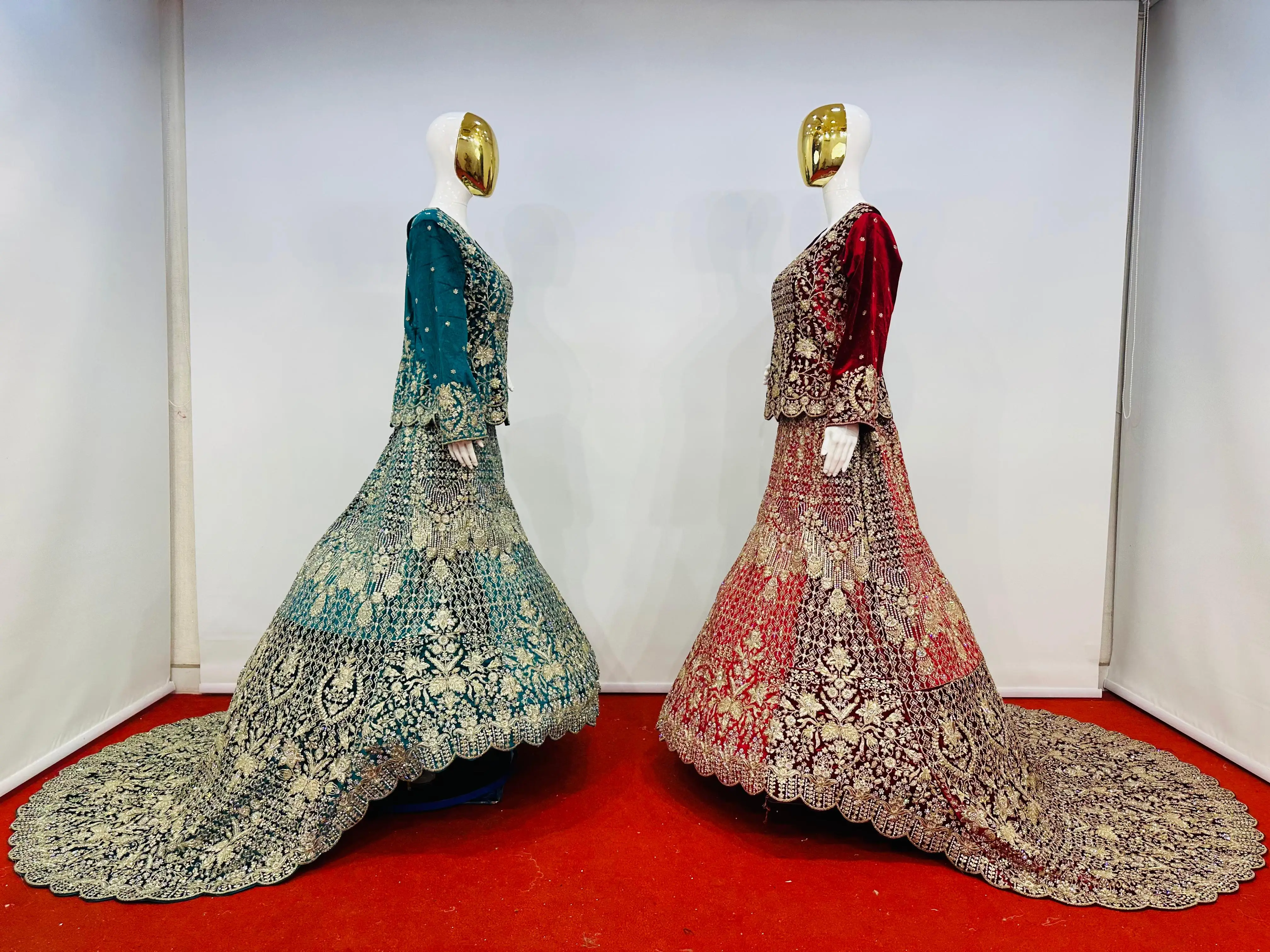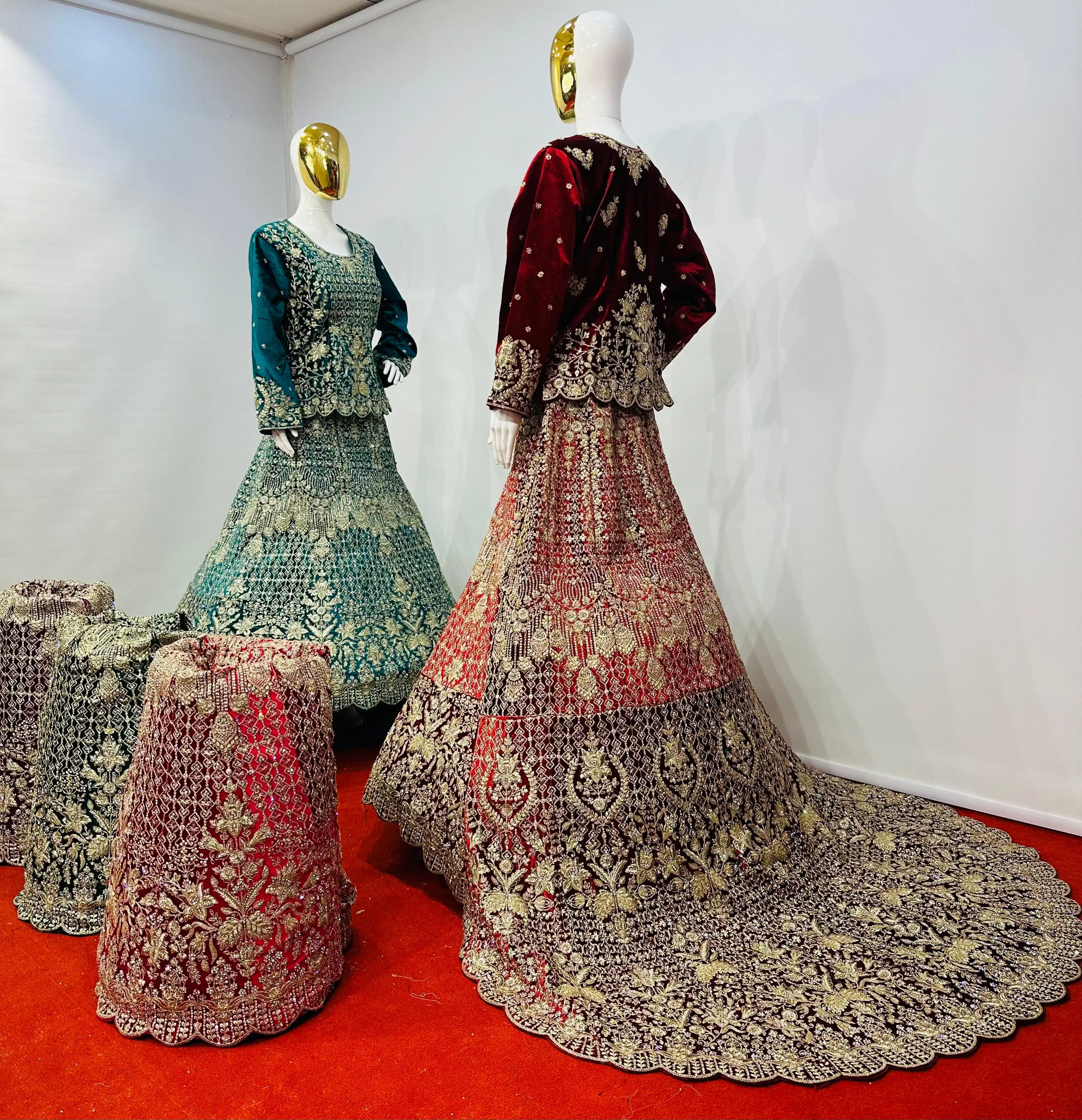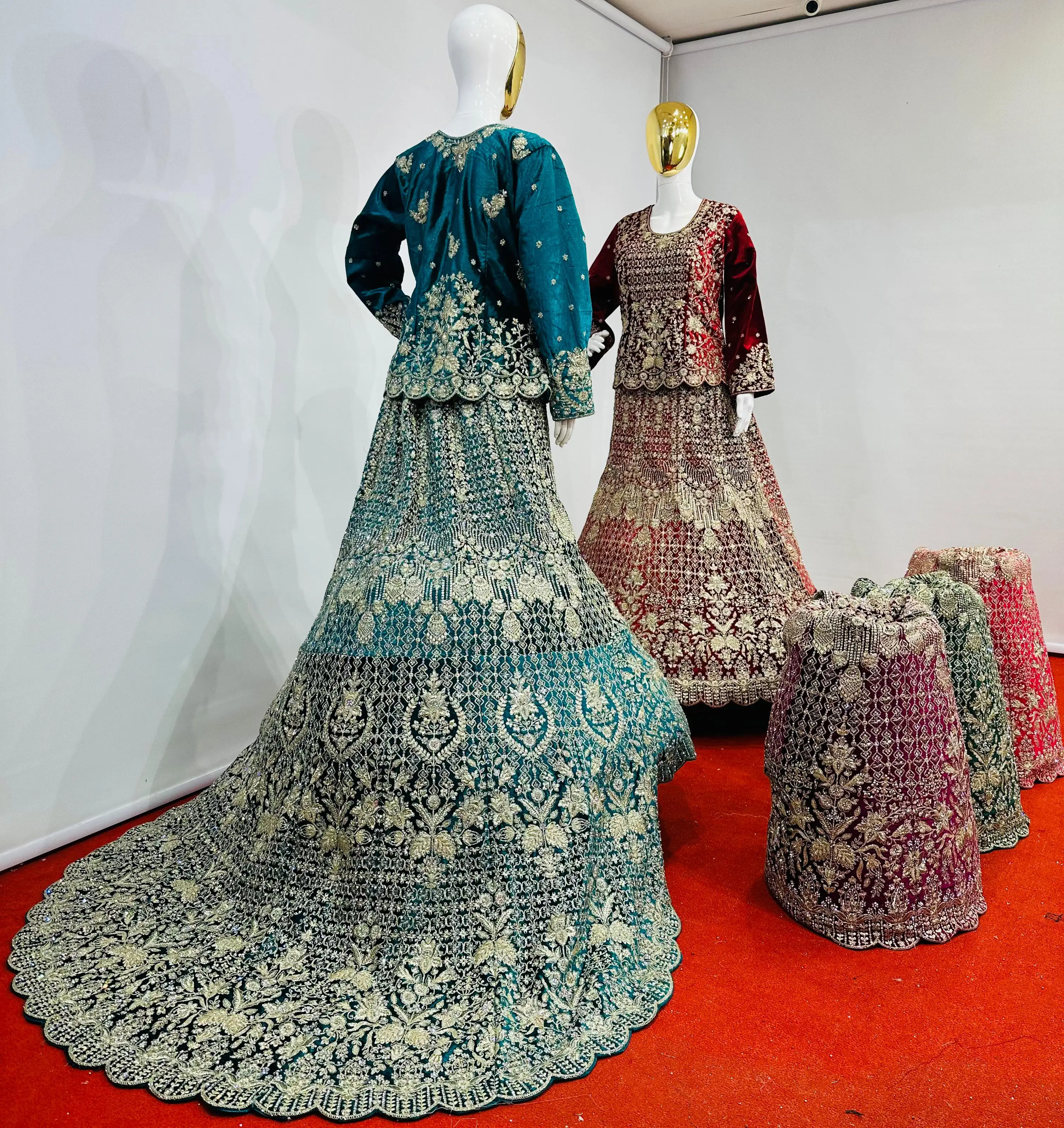 Full Heavy Work Velvet Lehenga with Crop Trail Cut & Sparkling Jarkan Stones 2025 Designer Bridal Must-Have
