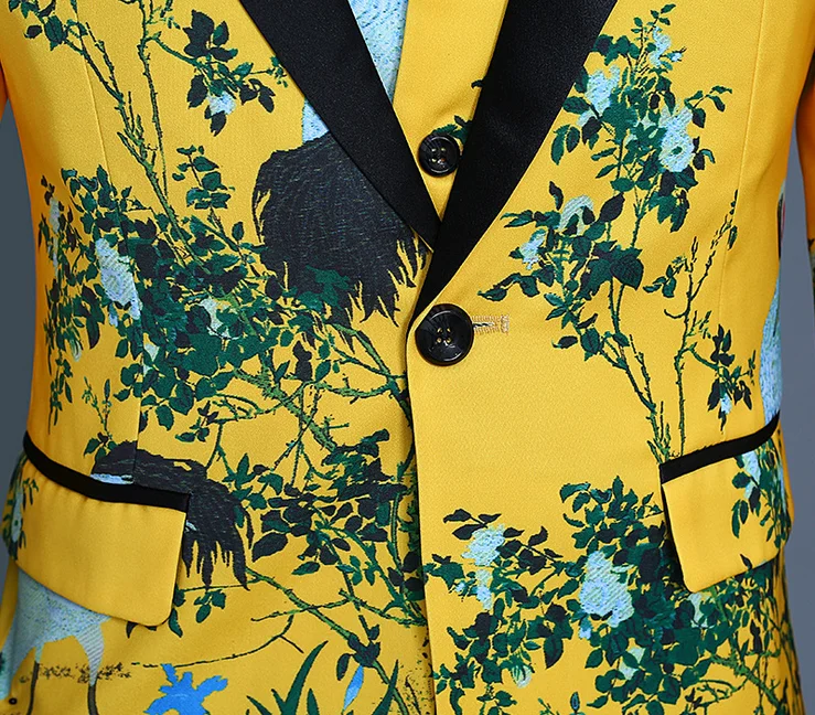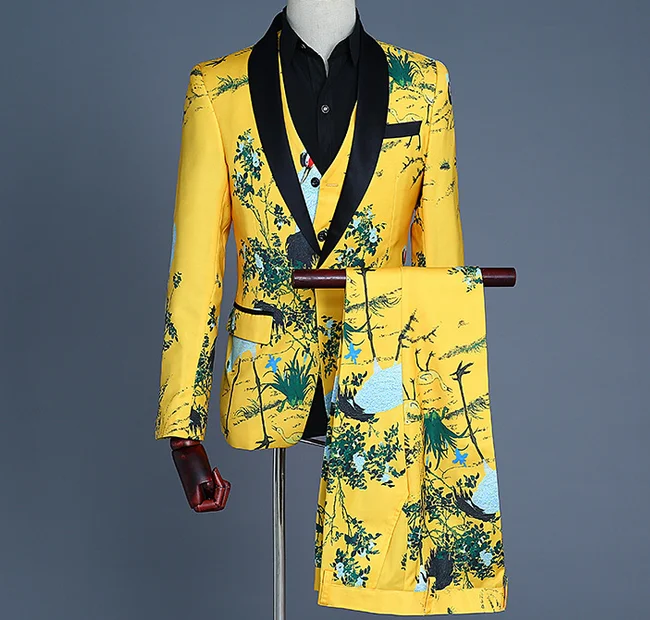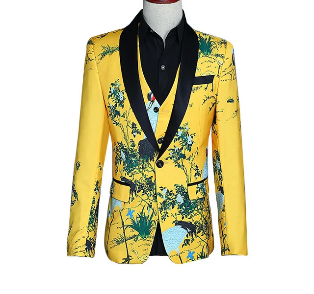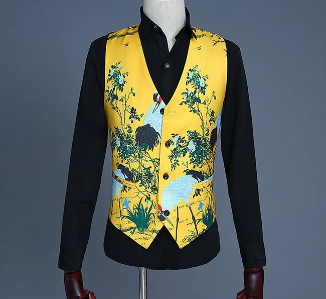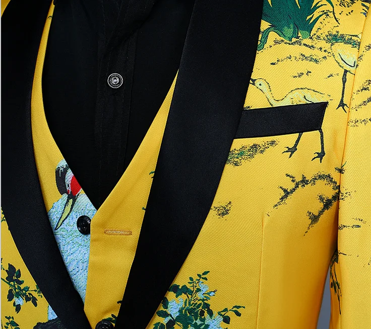 New Custom Men's Suit Vest Three-piece Ensemble Yellow Print Tuxedo