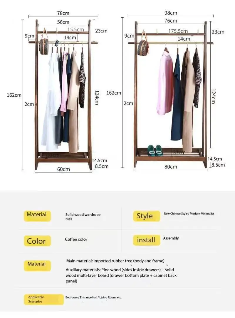 Integrated Bedroom Floor Area Drawer Cabinet Storage Rack Entrance Storage Rack Hanging Clothes and Hats Rack