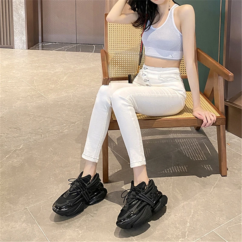 Women's Platform Fashion Sneakers Bullet Spaceship Casual Chunky Shoes Men