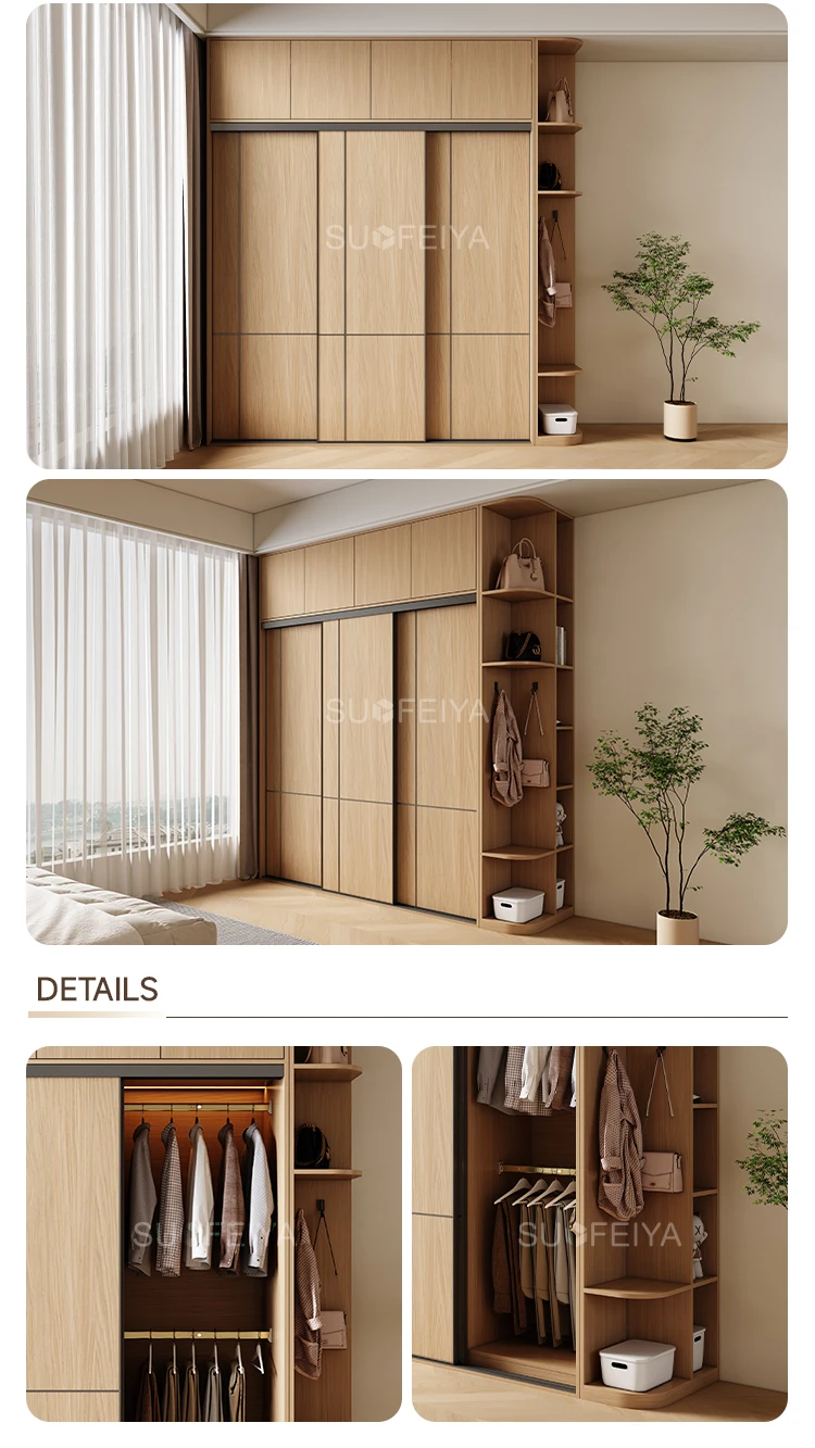 Apartment Project Veneer Wooden Wardrobe with Sliding Doors Closet for Clothes Organization