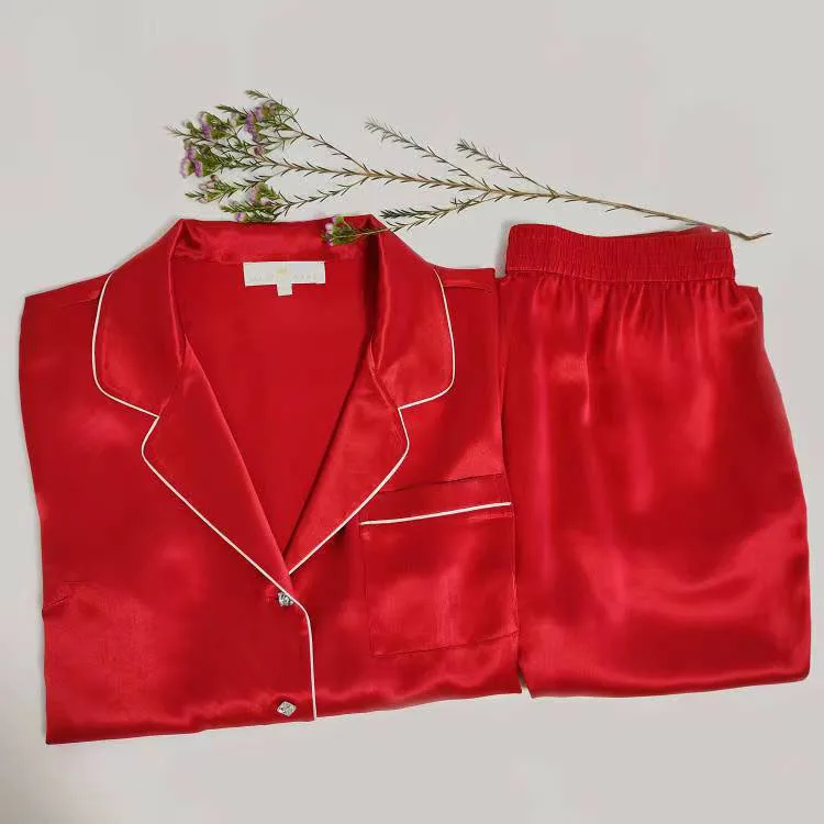 100% Silk 22mm Long Sleeve Silk Pajama Set Sleepwear for Women