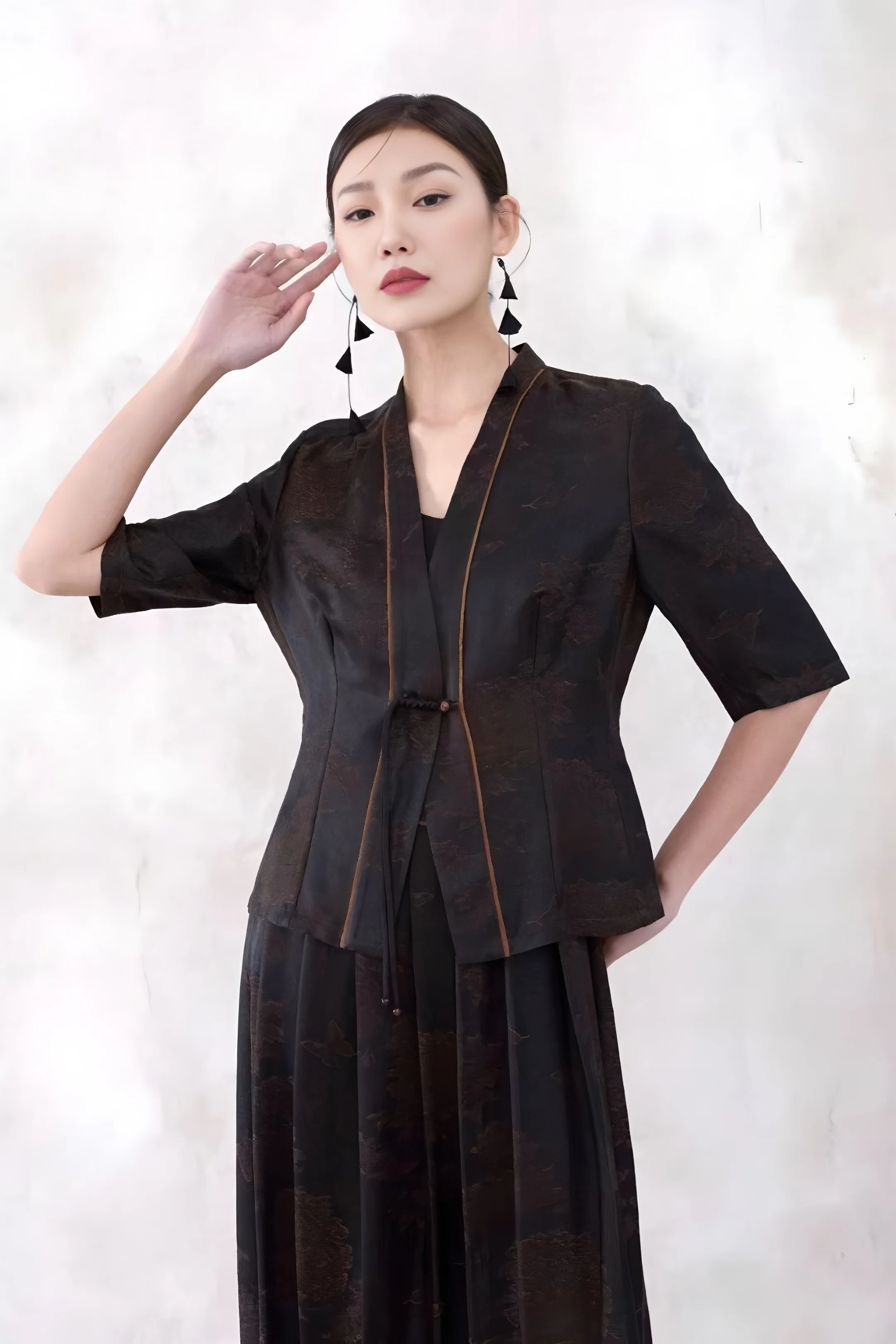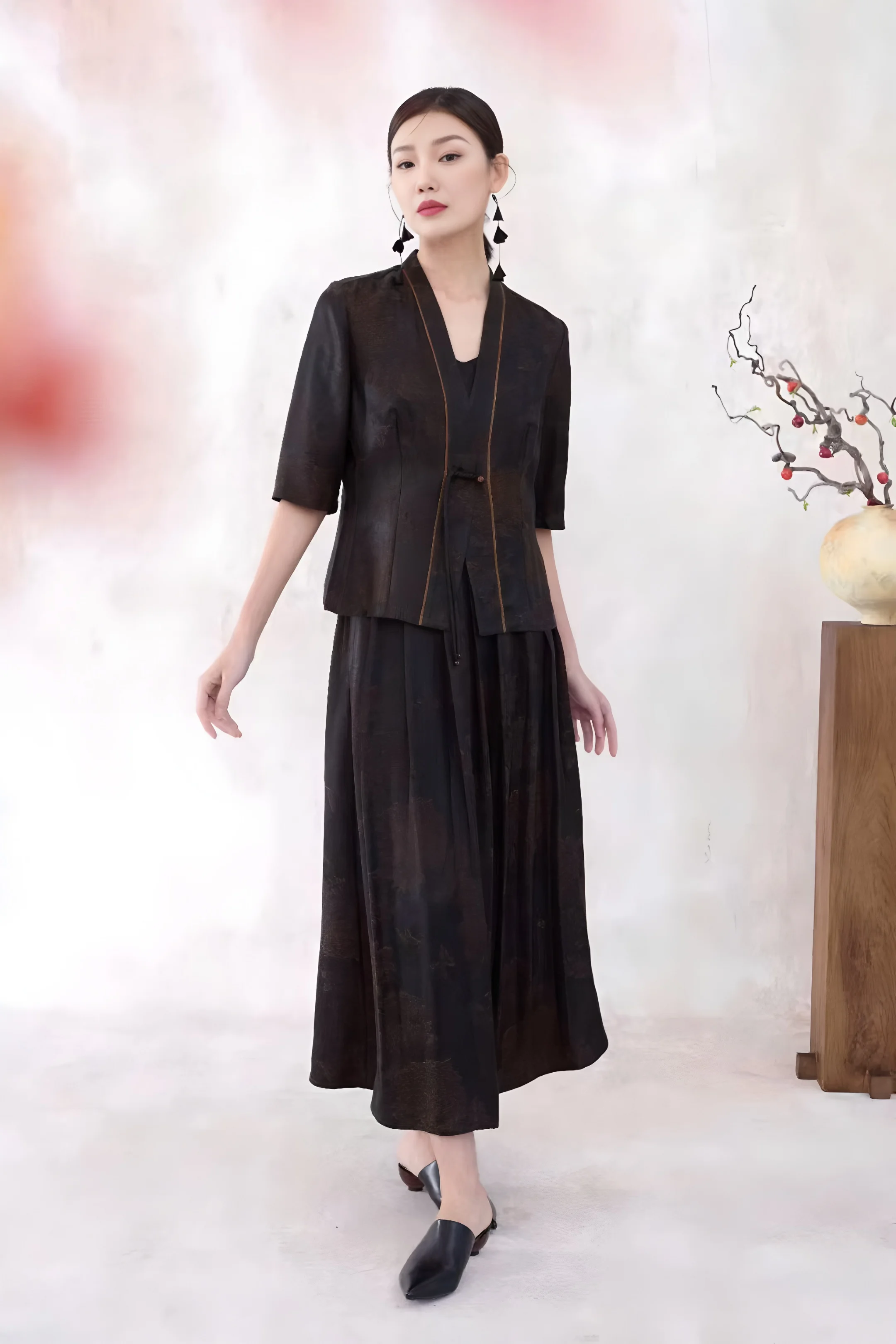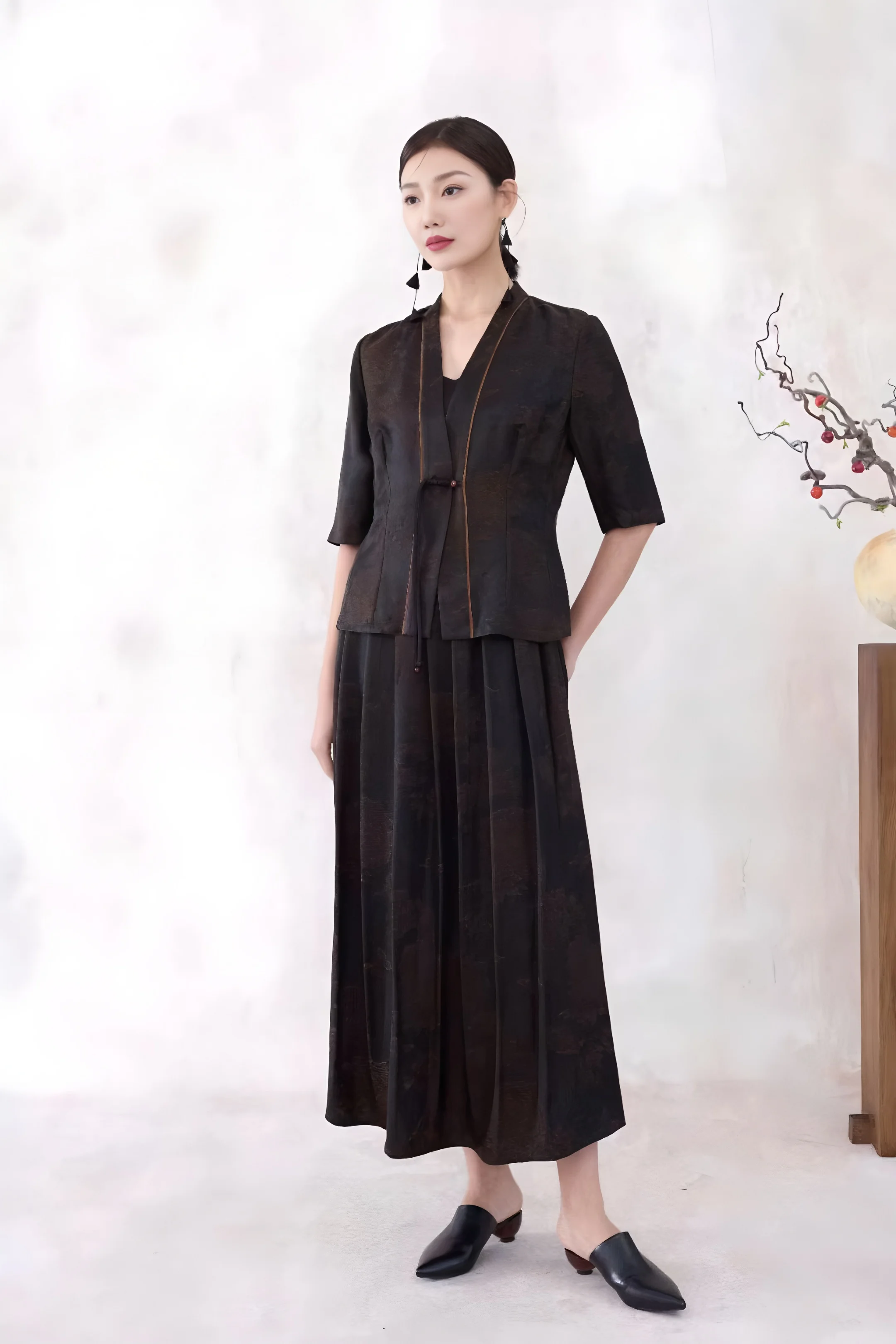 Women's Modern Traditional Chinese Clothing for Autumn Spring Versatile Buttonless Elbow Length Sleeves for Versatility