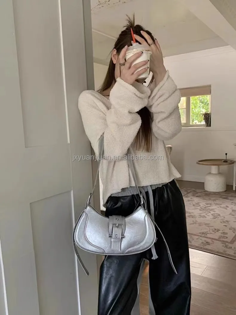 New Fashionable Underarm Bag for Girls, Hot Girl Motorcycle Bag, Genuine Leather Single-shoulder Cross-body Bag