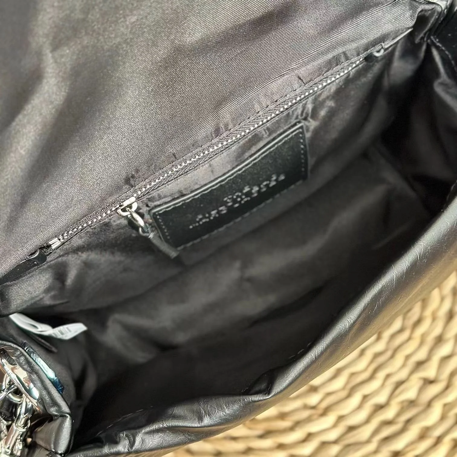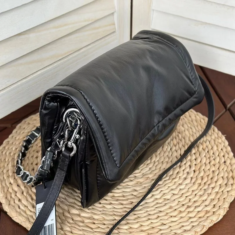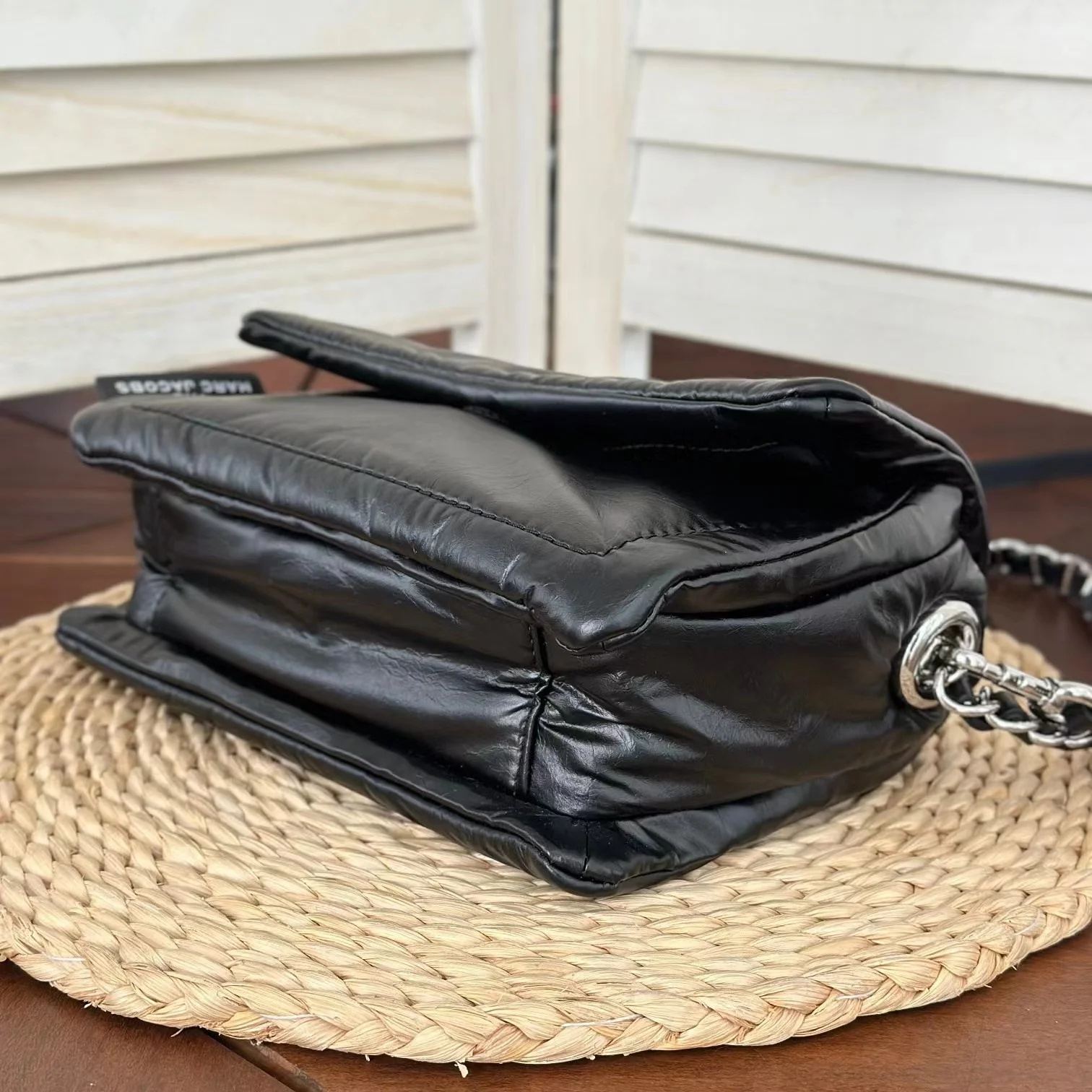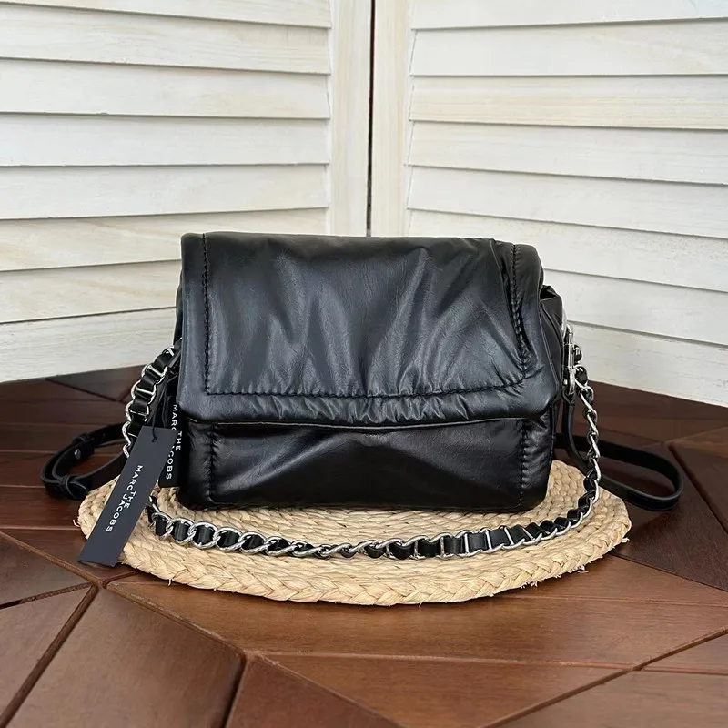 MJ Women's All- Match Fashionable European American Genuine Leather Crossbody Chain Bag New Pleated Sheepskin Flip Messenger Bag