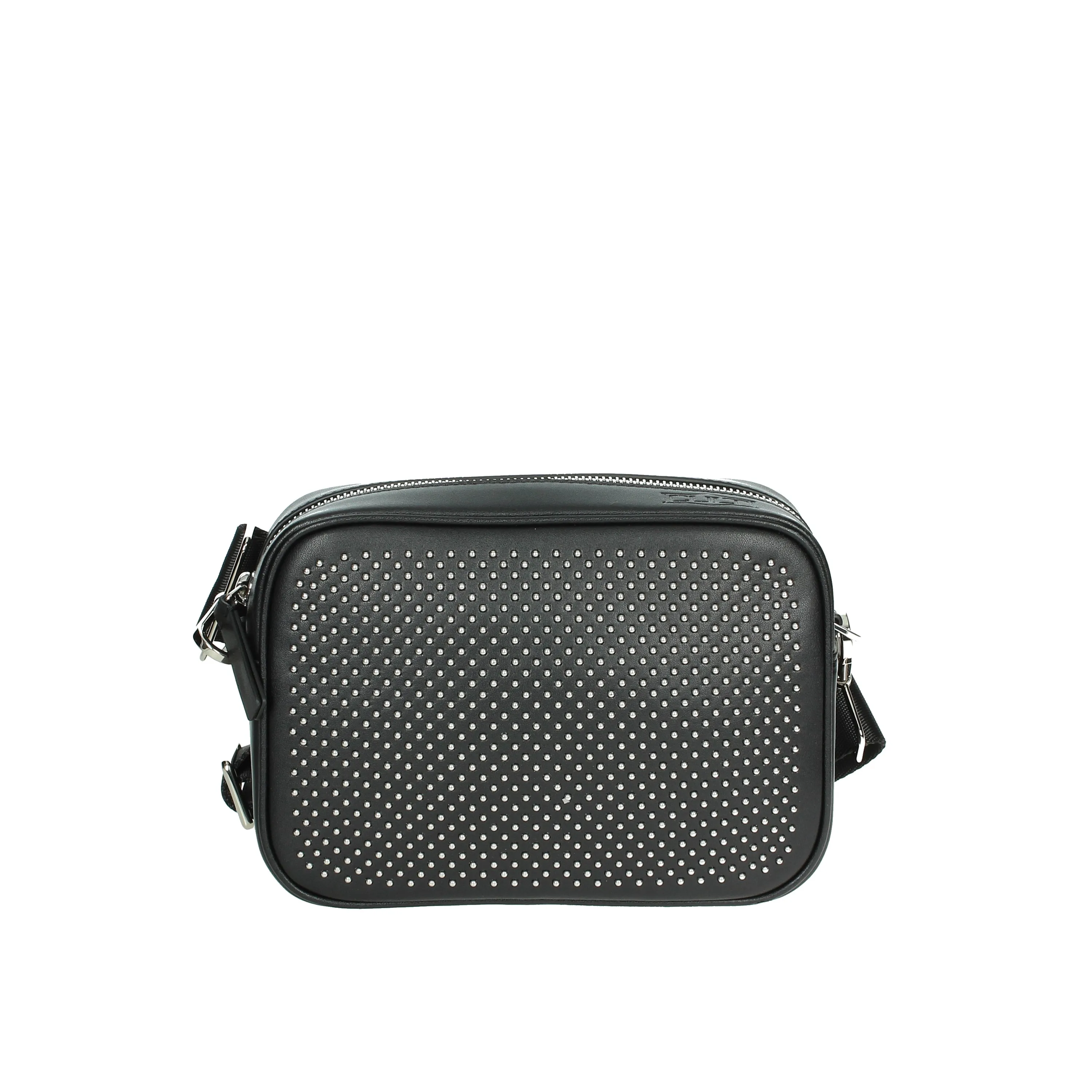 This shoulder bag features a sleek black color (NERO) that effortlessly complements any outfit. It boasts a spacious interior for storing essentials and is equipped with a secure zipper closure to keep your belongings safe. The bag's size (TU) ensures it is neither too bulky nor too small, providing the perfect balance of capacity and portability. Additionally, the bag is adorned with a subtle dotted pattern that adds a touch of sophistication.