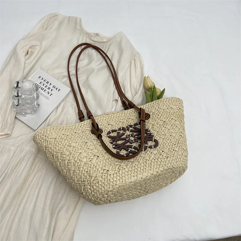 Wholesale Rattan Straw Bag Summer Beach Woven Tote Bags Seaside Holiday Handbag Raffia Shoulder Bags