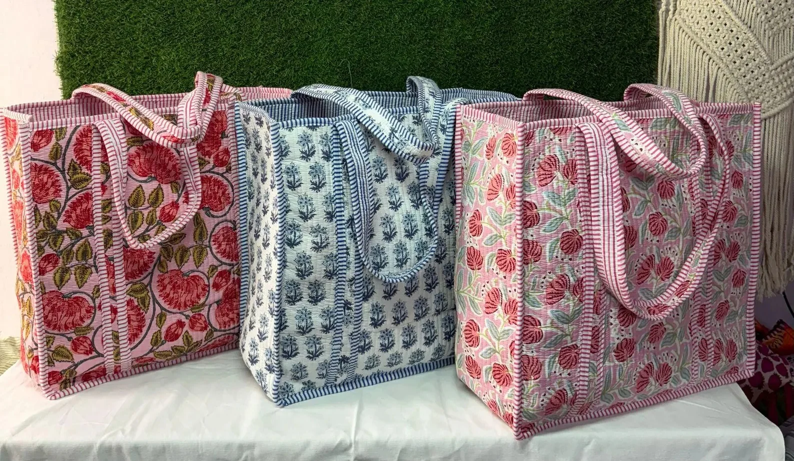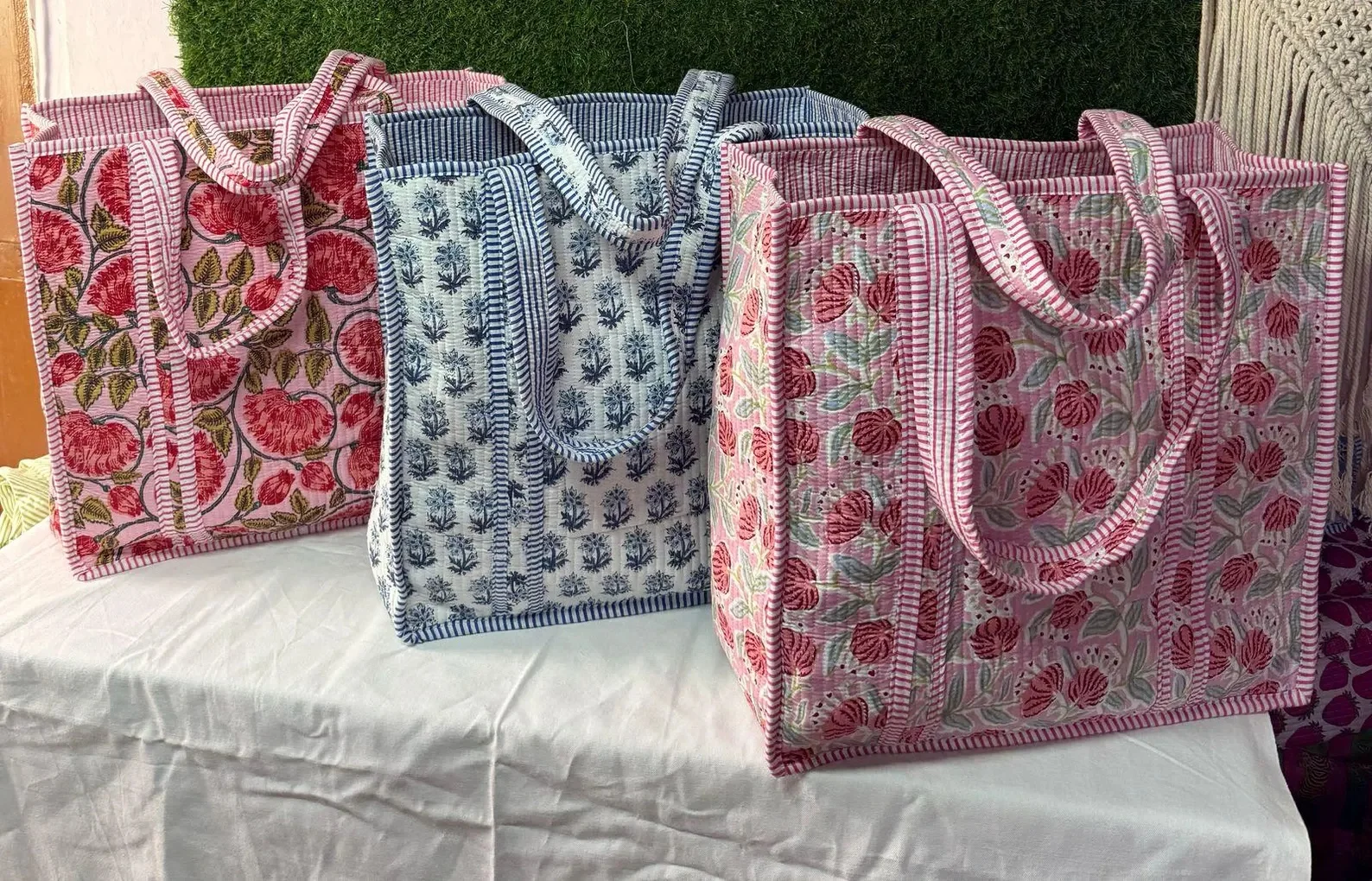 20pcs Large Cotton Quilted Boho Travel Bag for Women Handmade Shoulder Purse Open Floral Weekender Block Print Tote Bag Chain