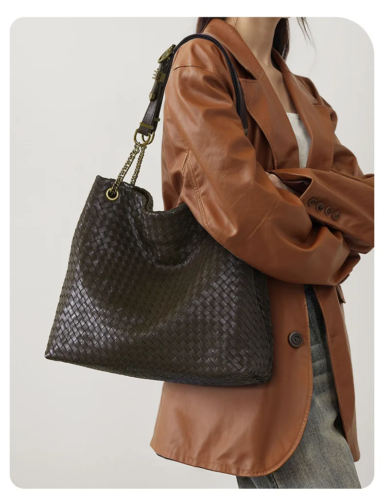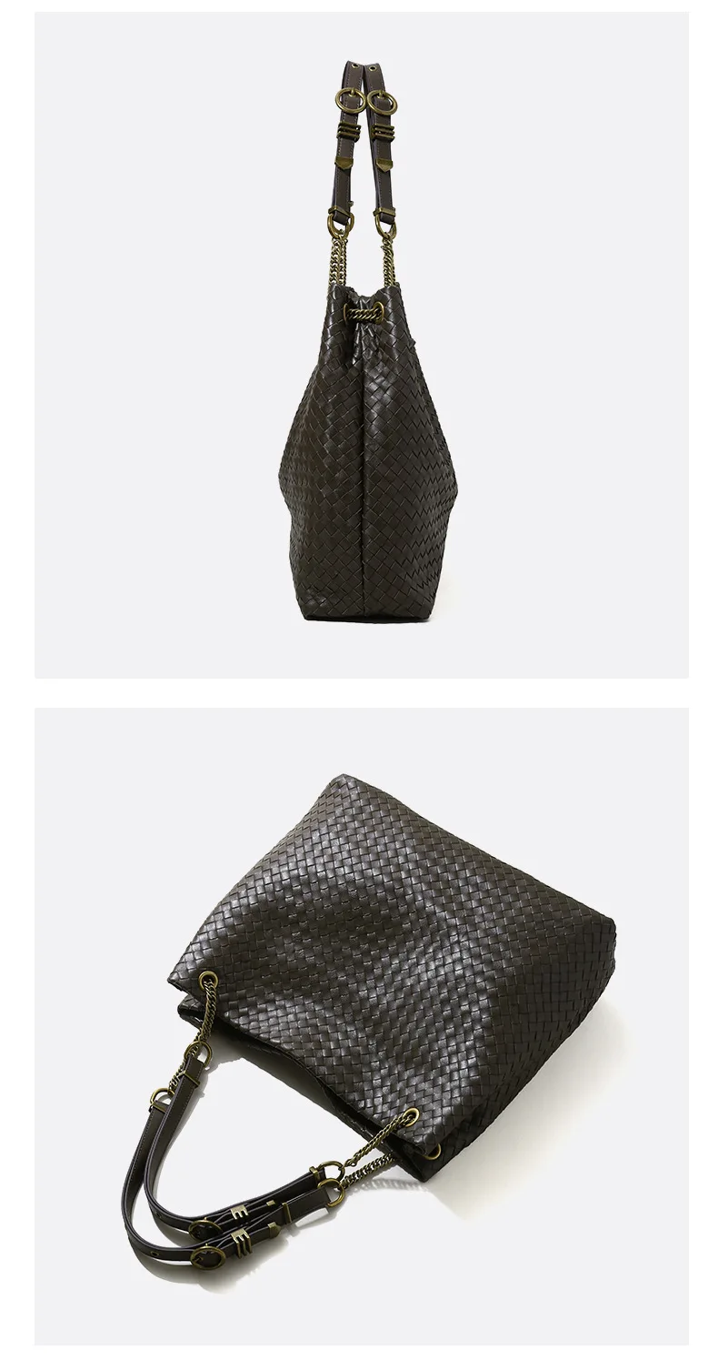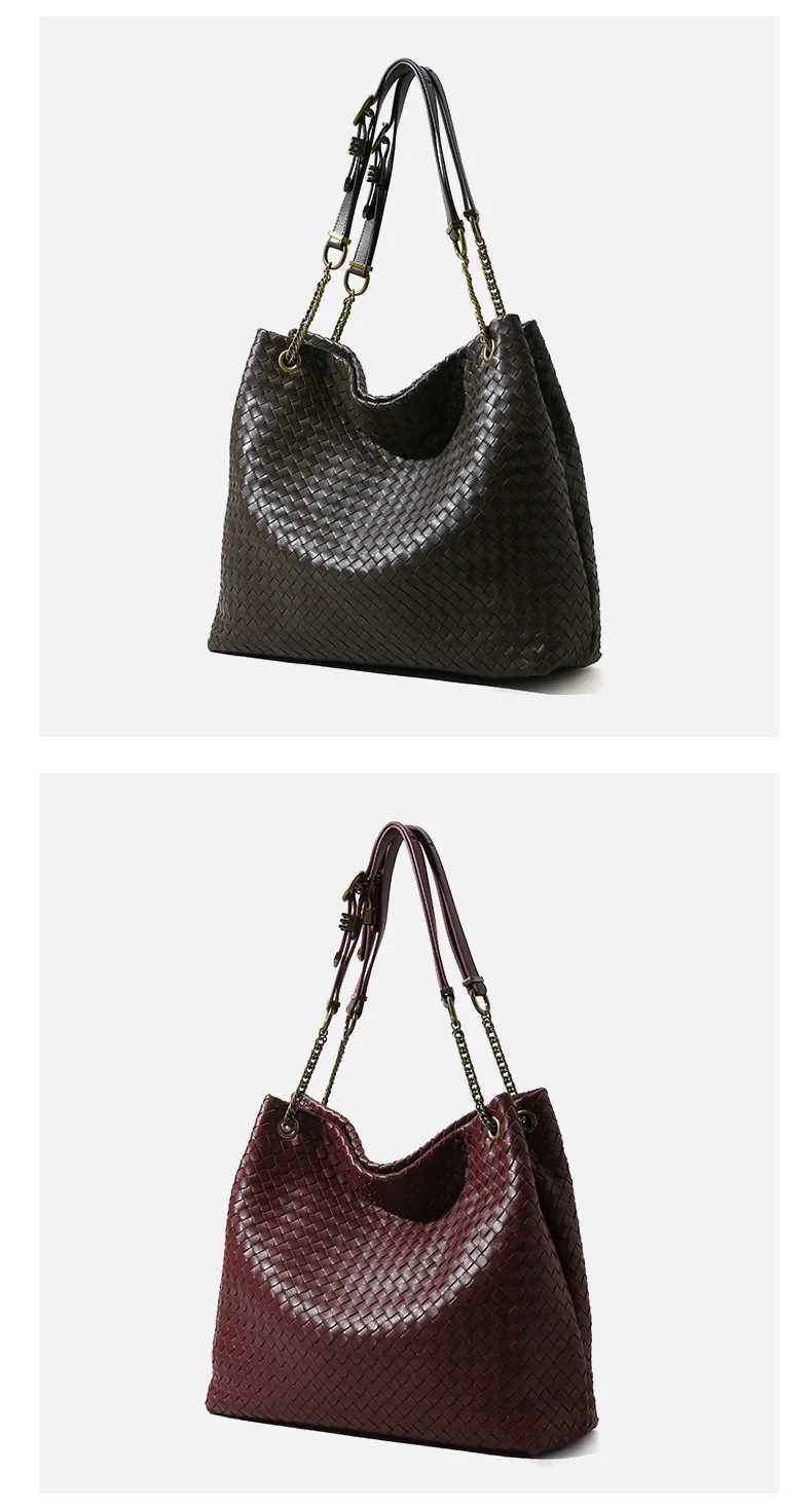 Handmade Woven Women's Shoulder Tote Bag Large Capacity with Open Closure