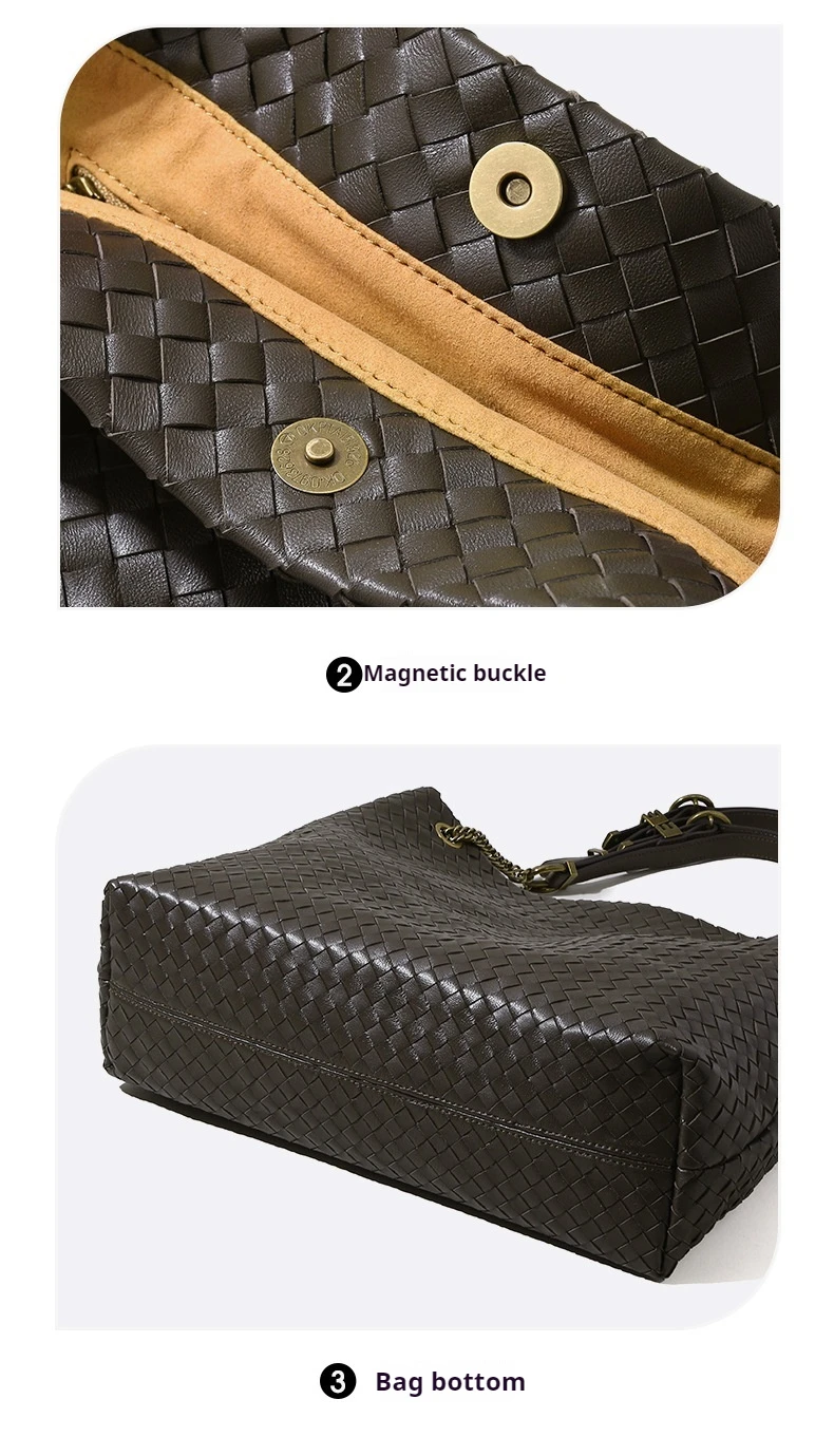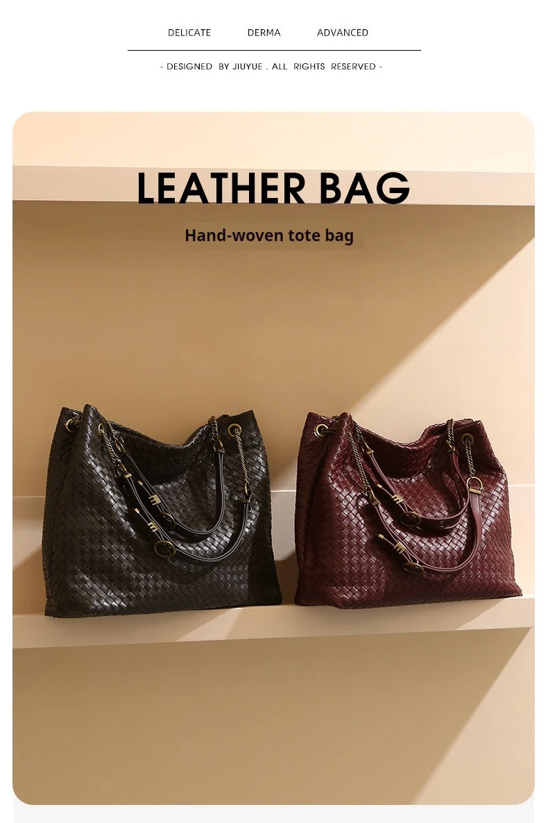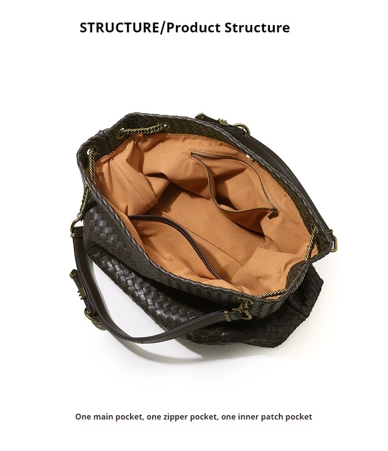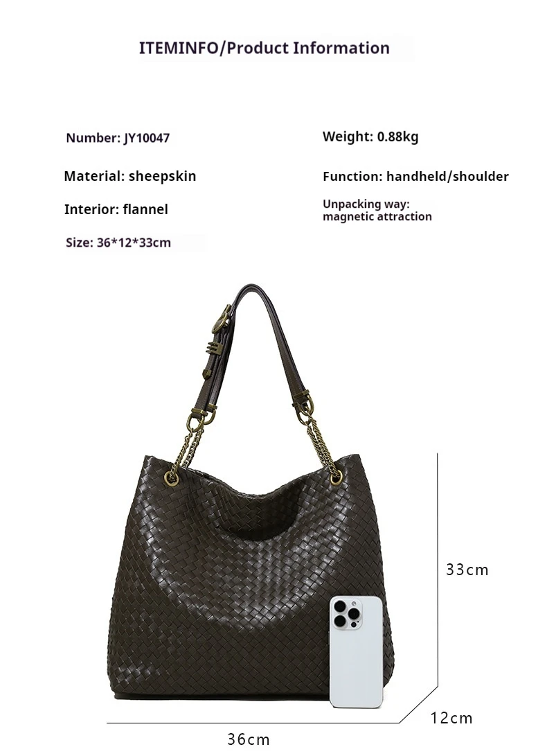 Handmade Woven Women's Shoulder Tote Bag Large Capacity with Open Closure