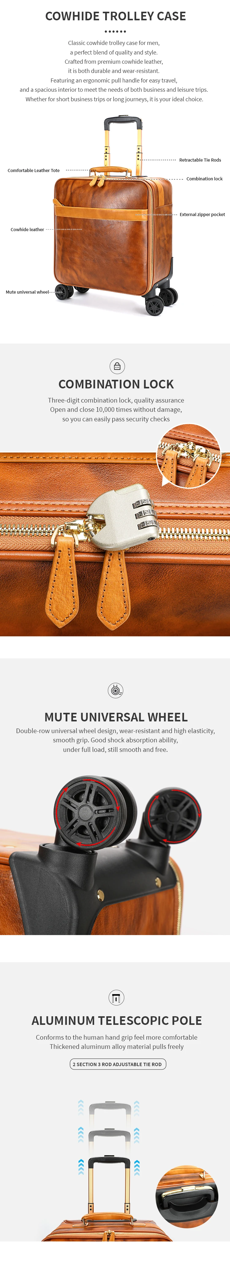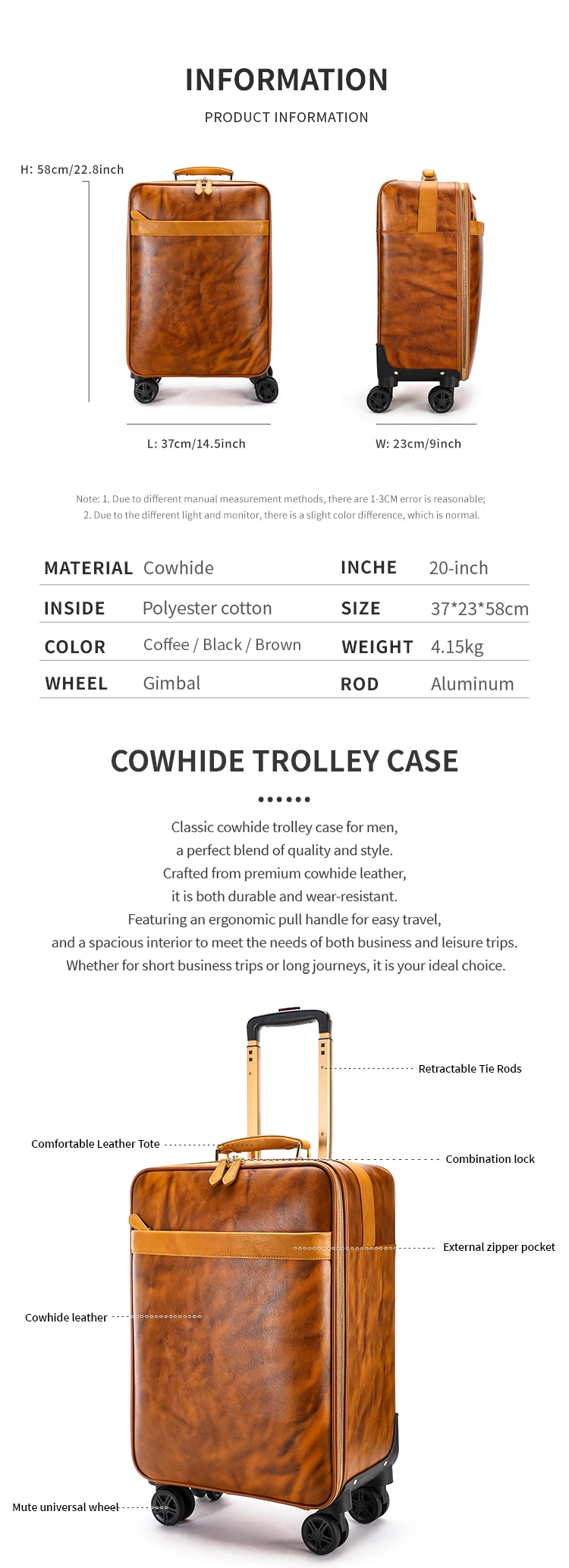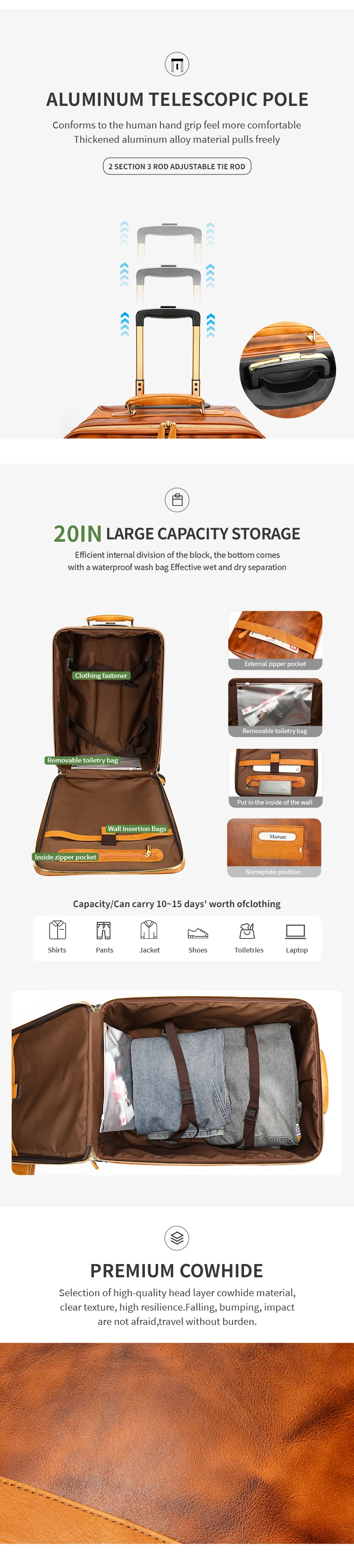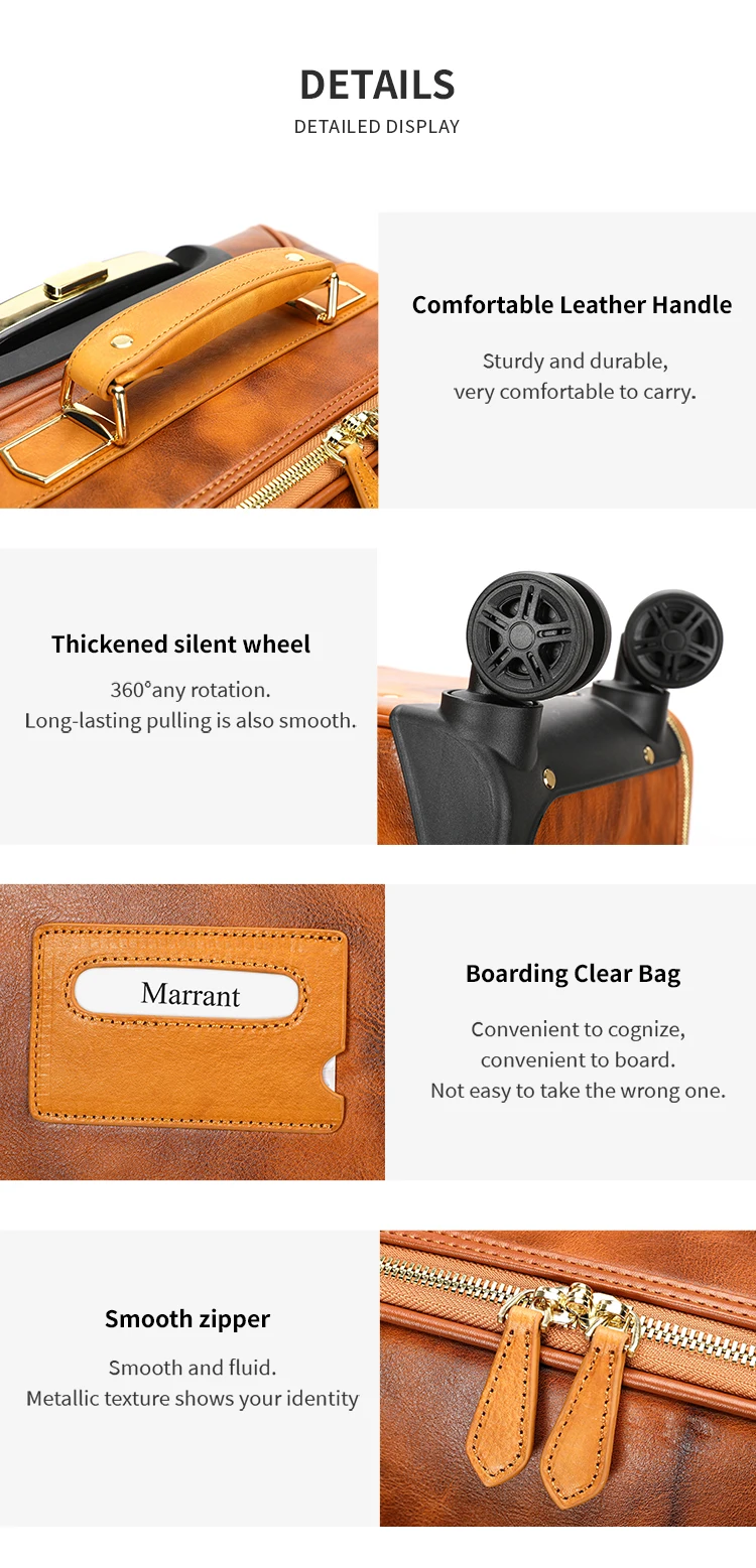 MARRANT Men Genuine Leather Aluminum Carry-on Luggage 18/20 Inch Suit Cases Travel Trolley Luggage Leather Suitcase Luggage