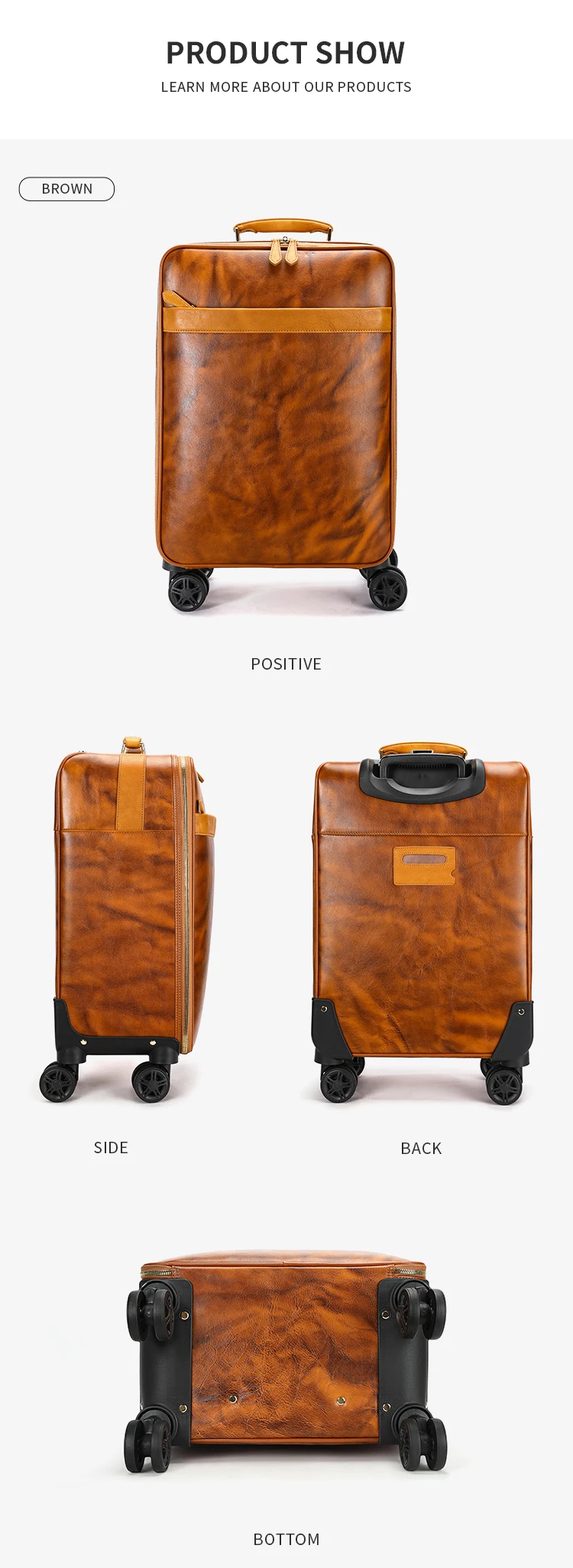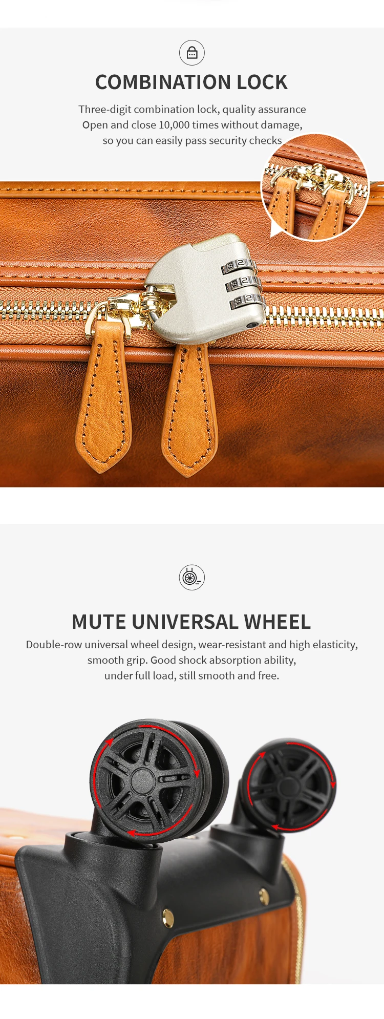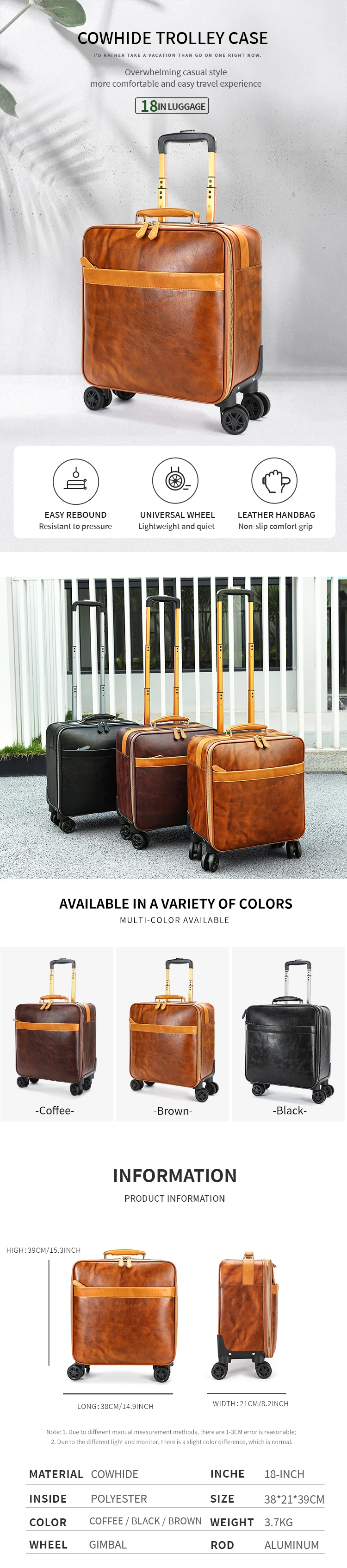 MARRANT Men Genuine Leather Aluminum Carry-on Luggage 18/20 Inch Suit Cases Travel Trolley Luggage Leather Suitcase Luggage