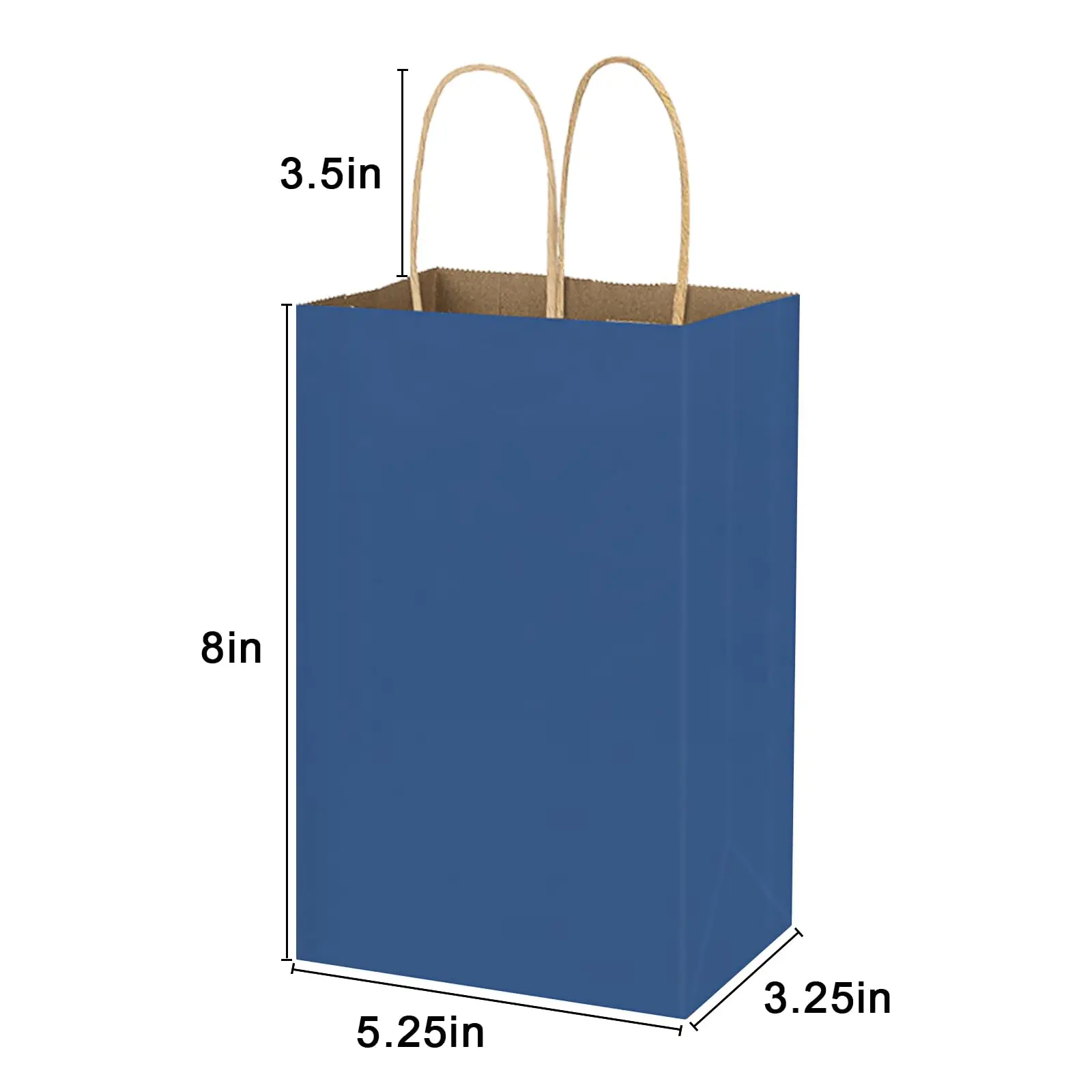 100 Pack 5.25x3.25x8 Inch Blue Kraft Paper Bags 100pcs
