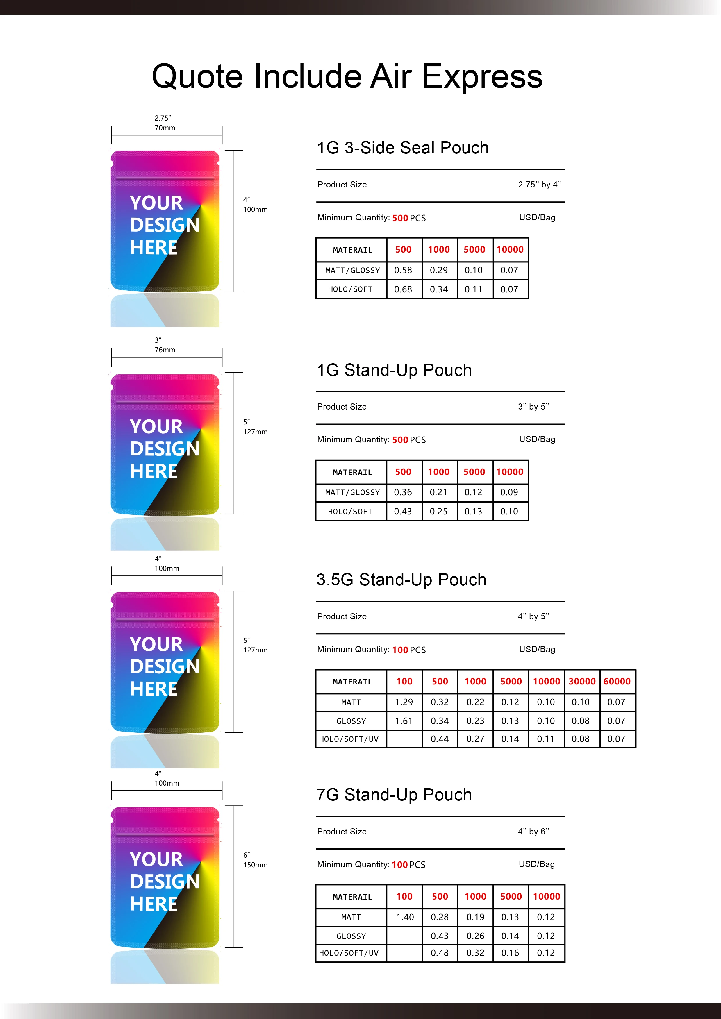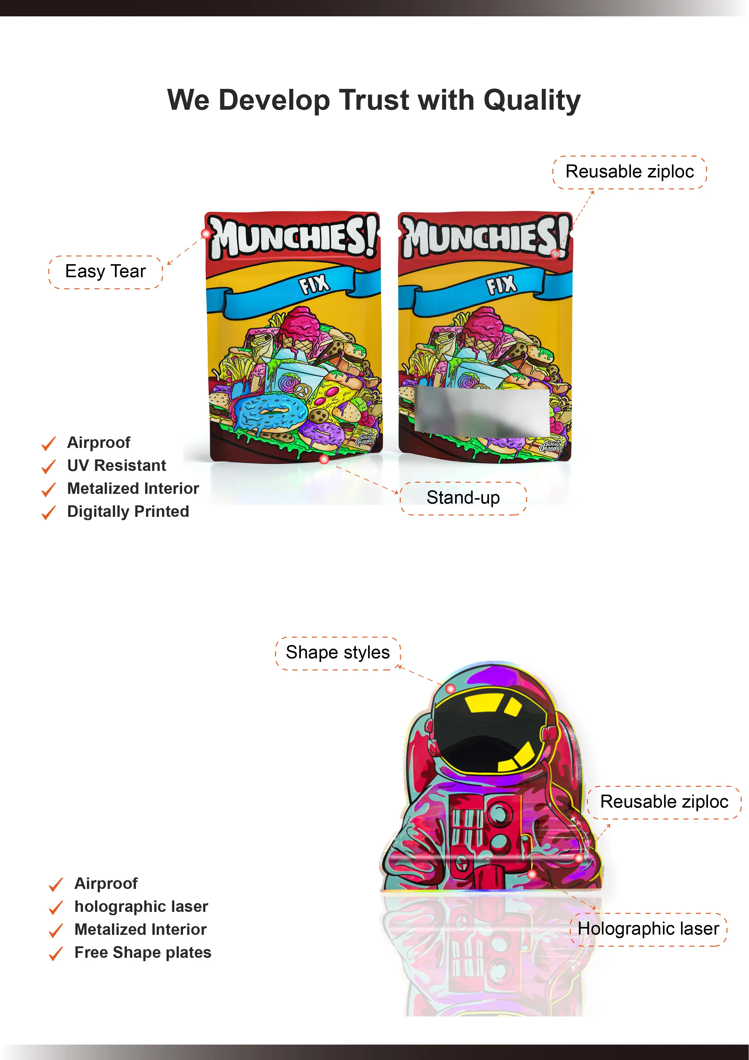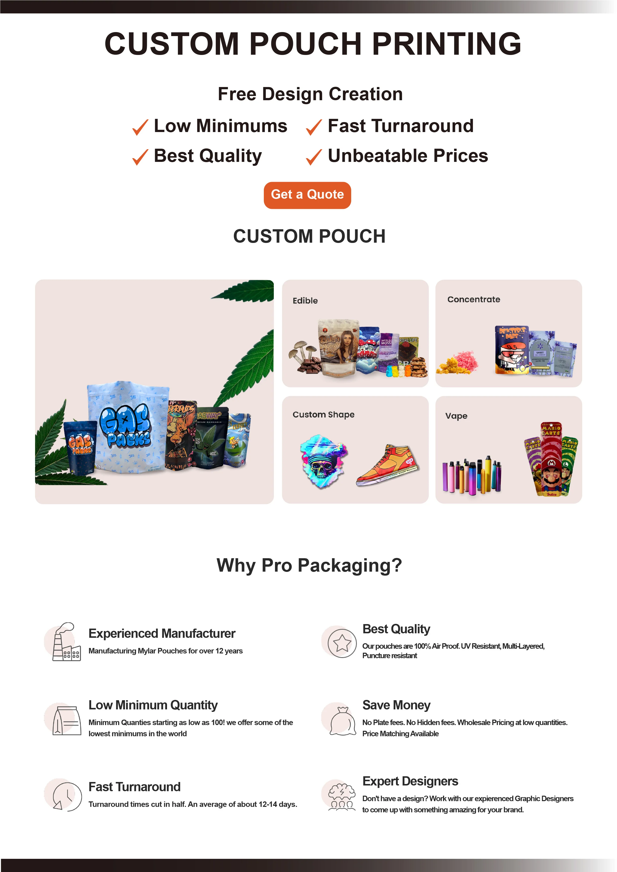 Pro Packaging Custom Mylar Bags 3.5G Free Design Creation Digitally Printed Zipper Bags with Barrier 100 Pcs Food Industry