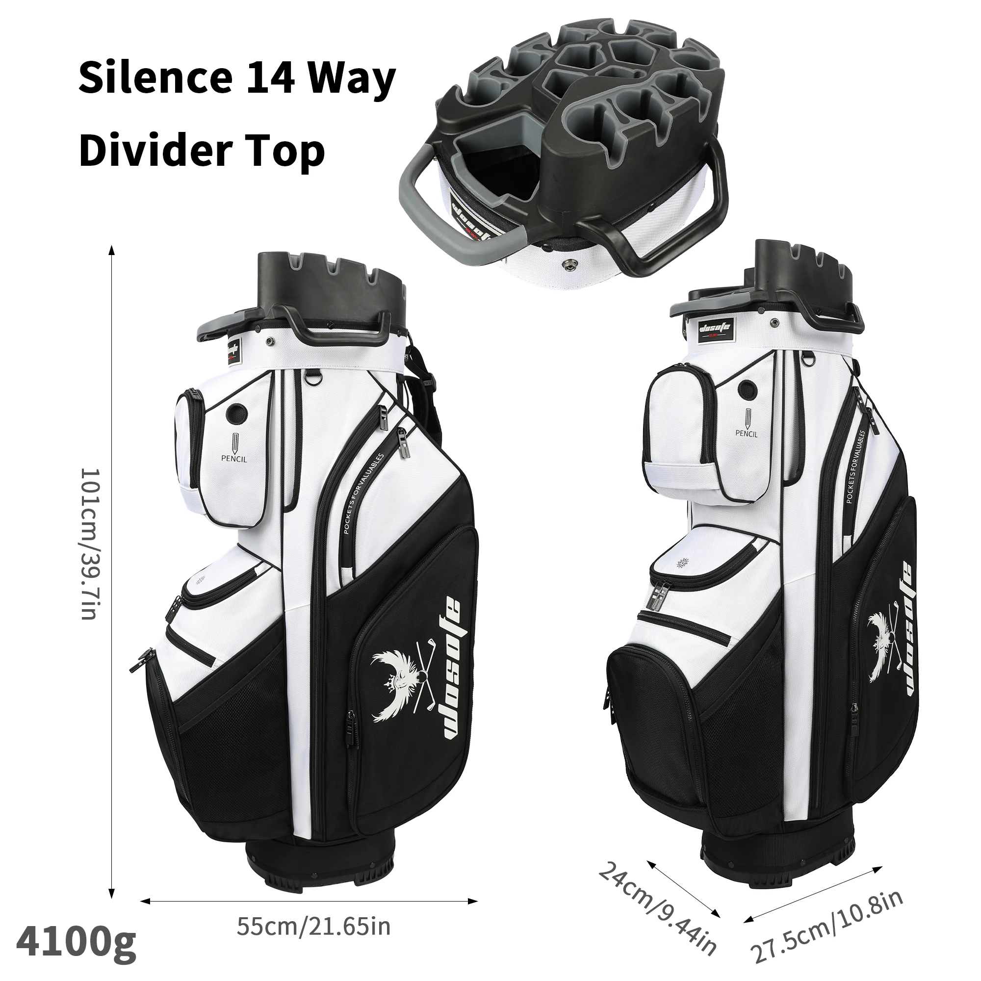 Factory Direct Customized Waterproof Portable Unisex Polyester Material 14-Way Divider Top Black White Golf Bag