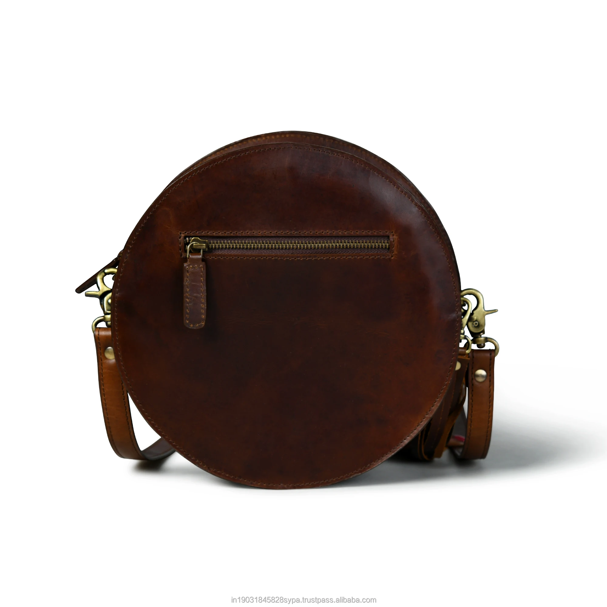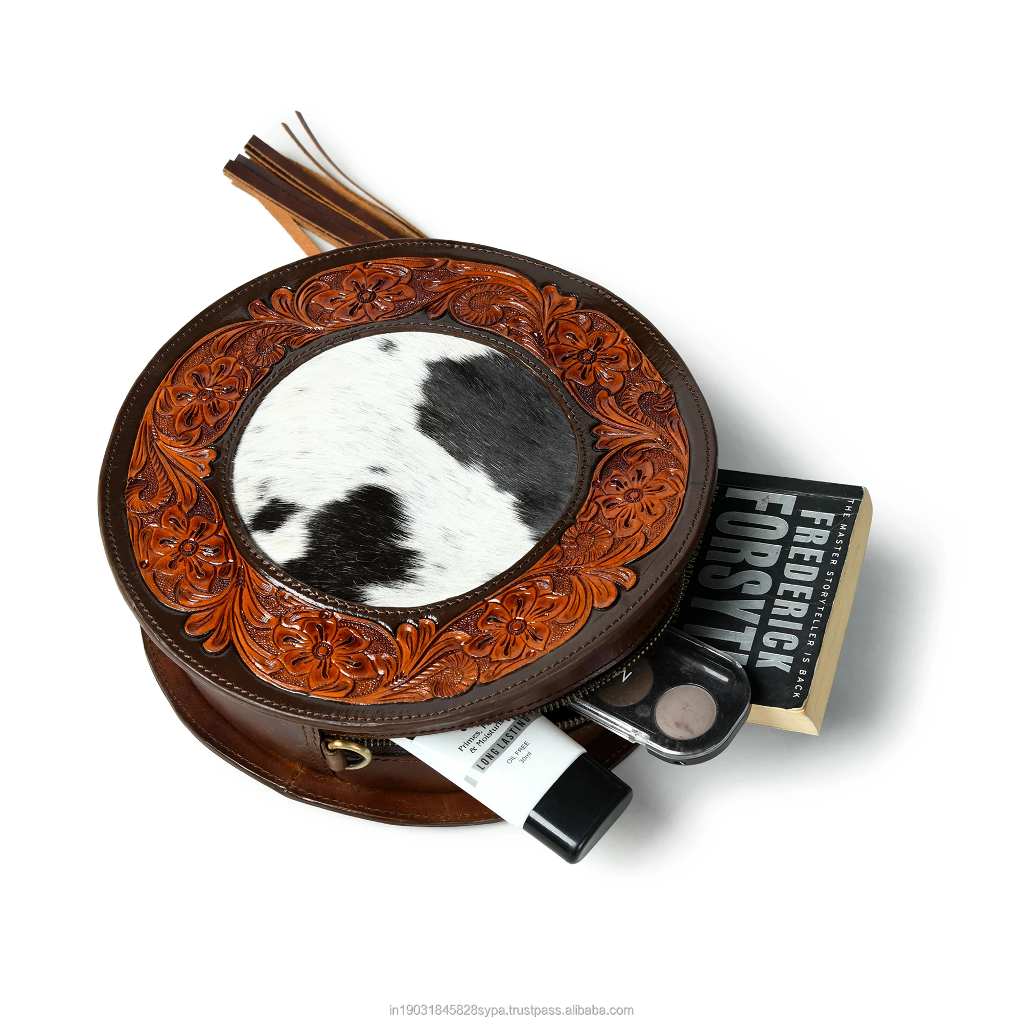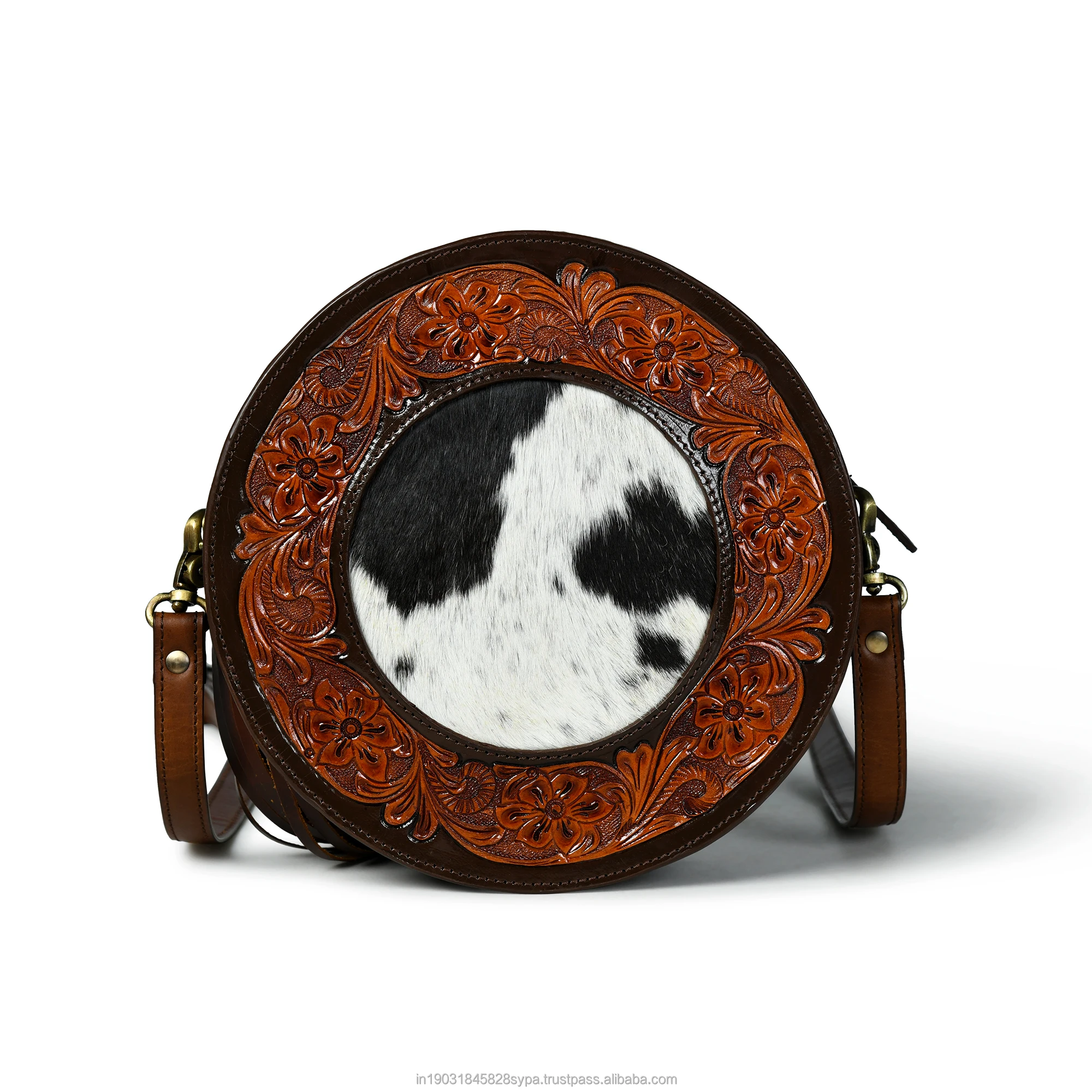 Premium Quality Real Leather Hair on Fashionable Lady's Cross Body Shoulder Bags with Hard Wax Zip Closure Round Shaped on Sale