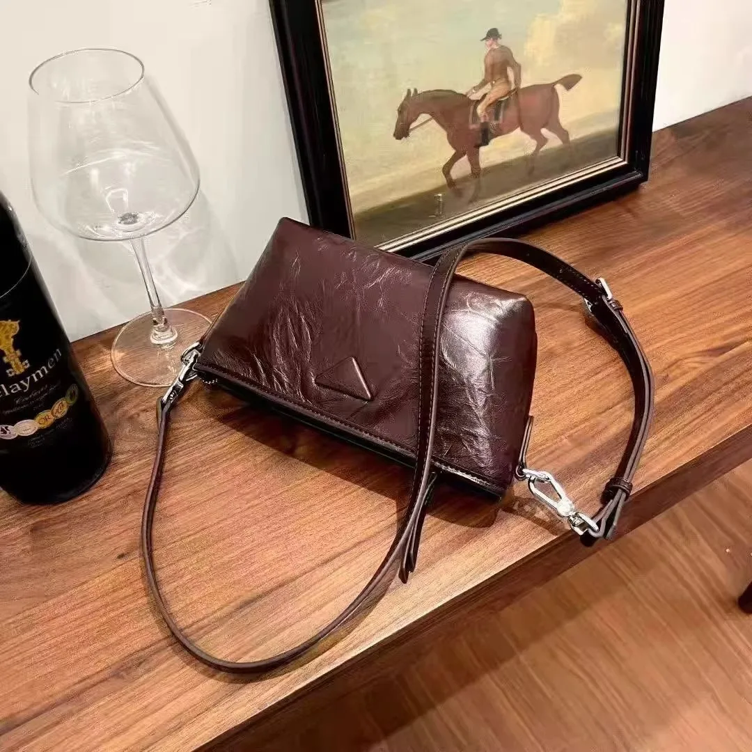 2025 New Minimalist Versatile Fashion Crossbody Bag Cowhide Exquisite Small Single Shoulder Top Layer Leather Zipper Closure