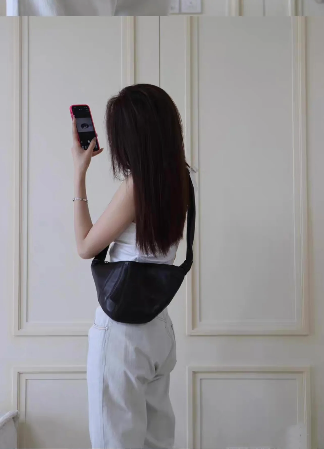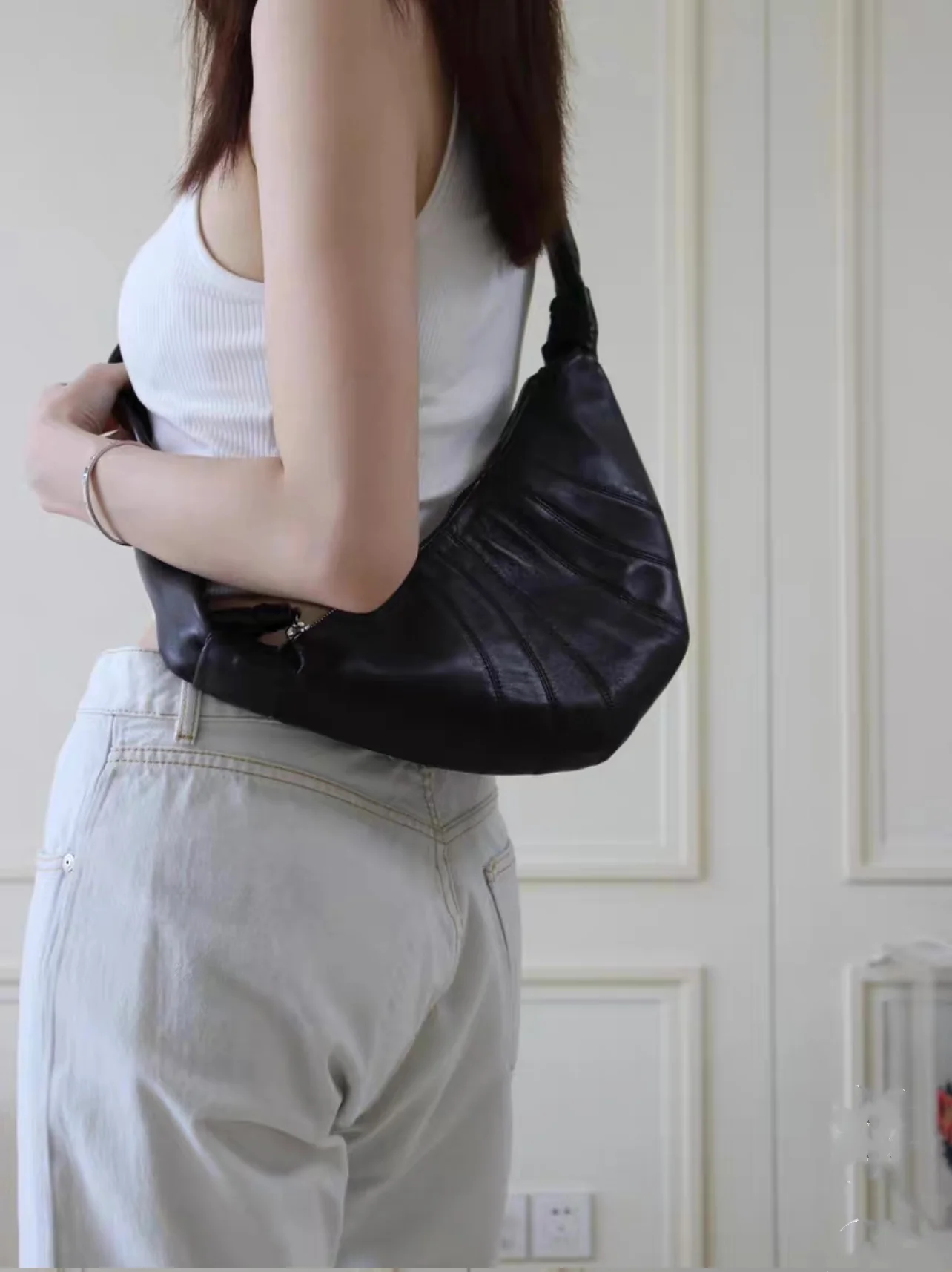 Imported Sheepskin Horn Backpack Genuine Leather Handbag Wallet Dumpling Bag with Open Style Fashion Messenger Bag
