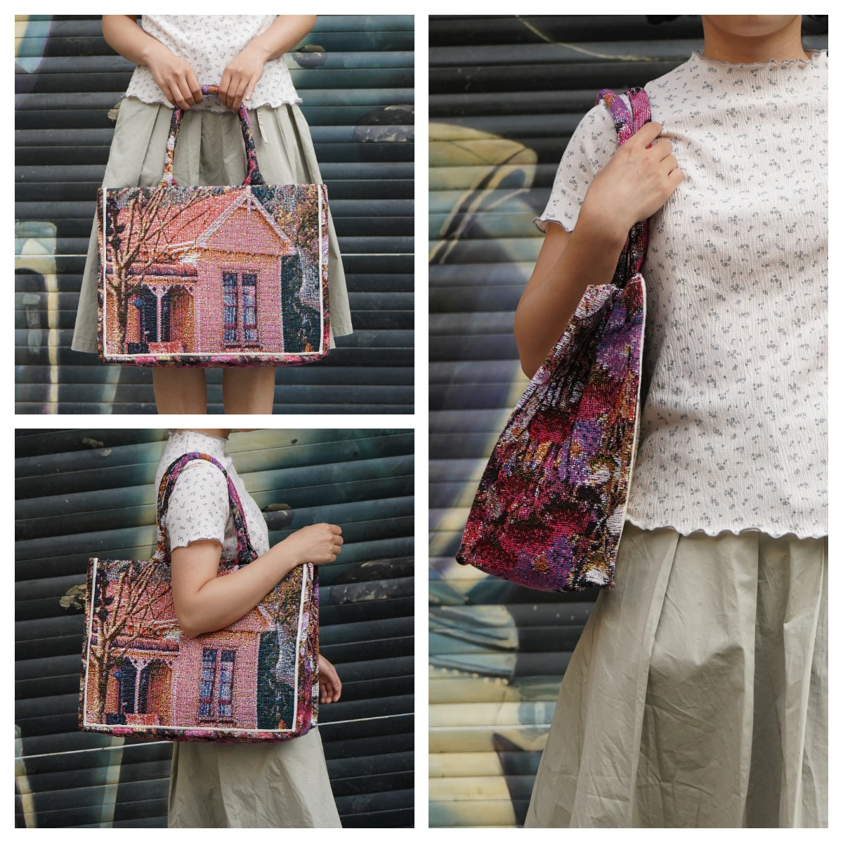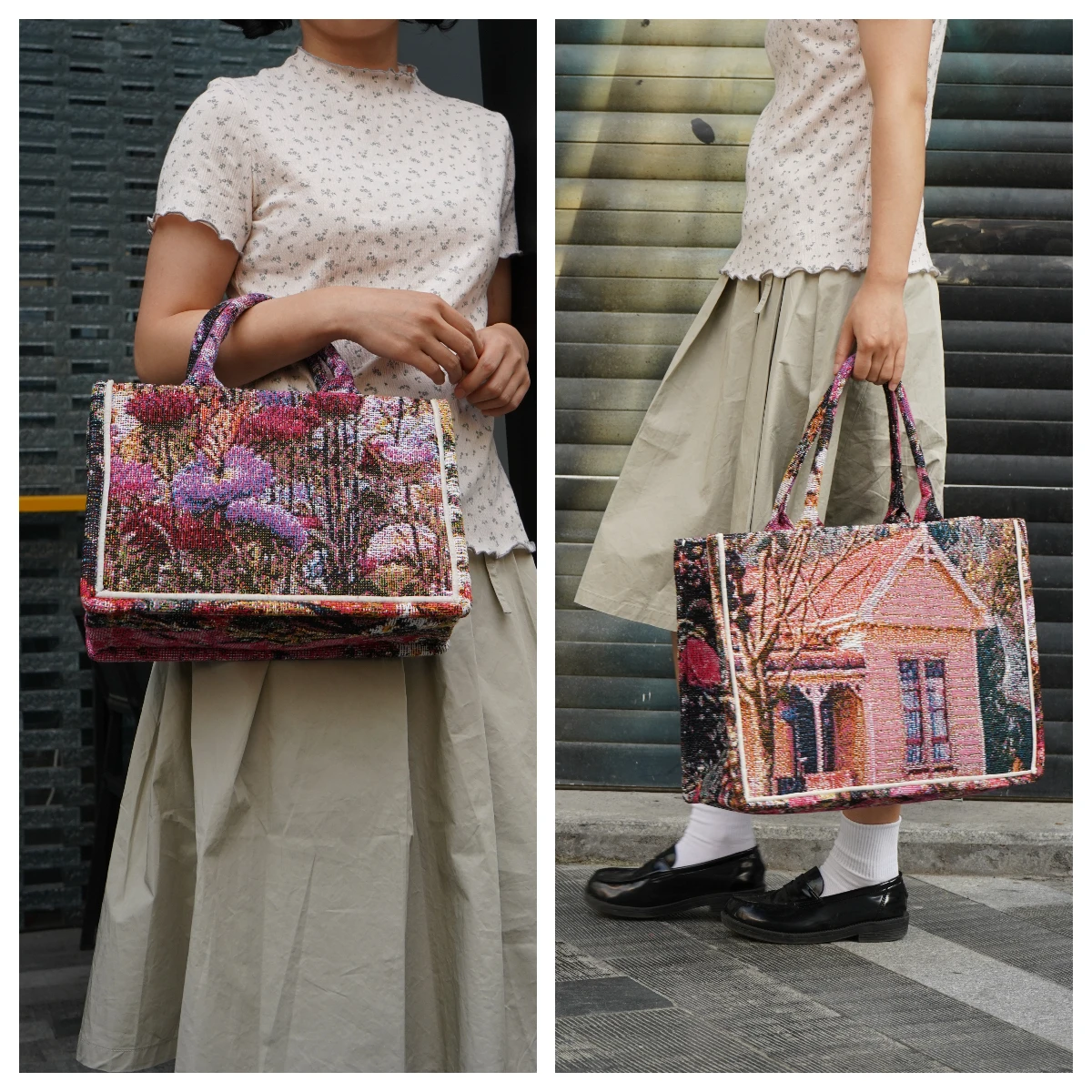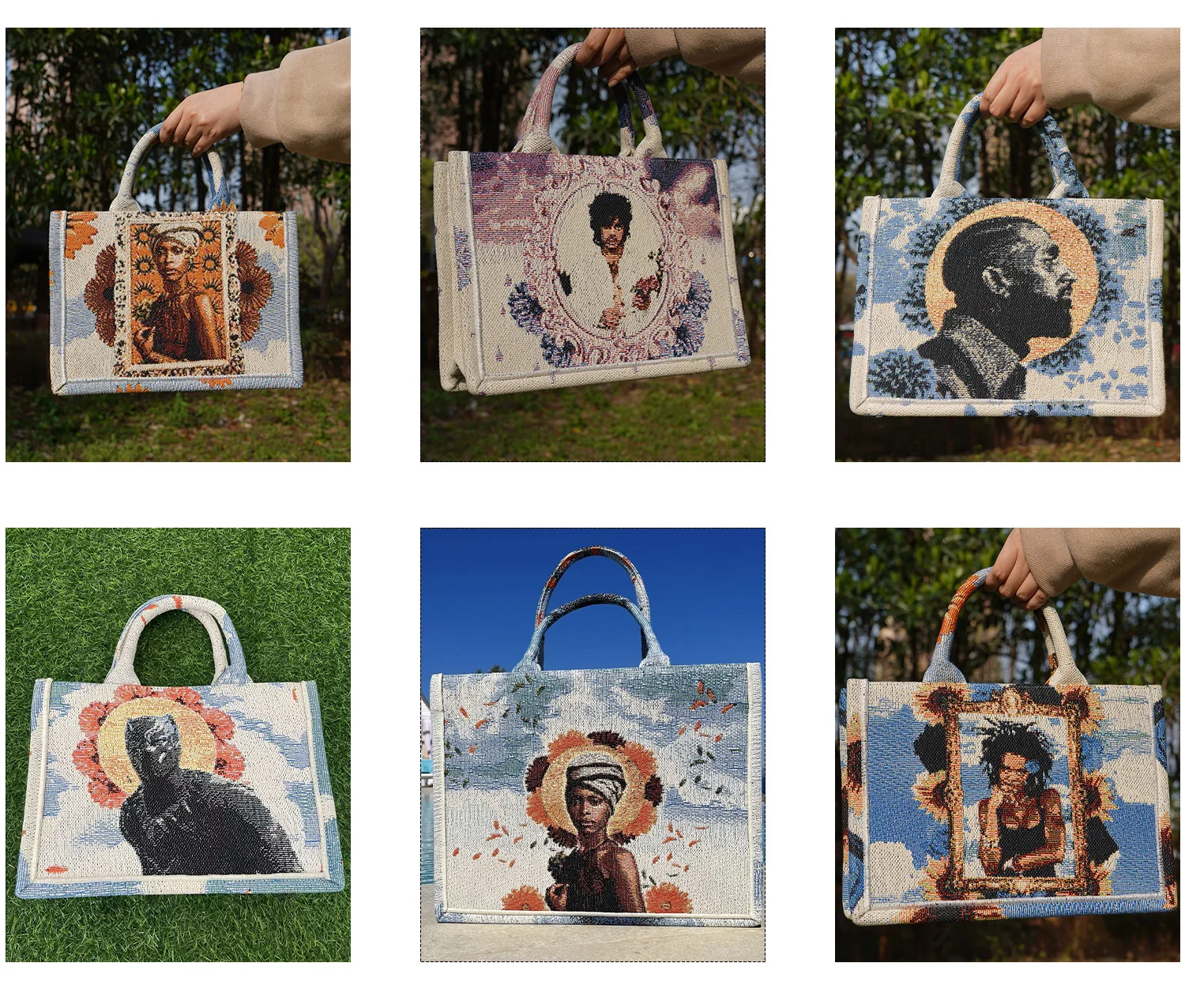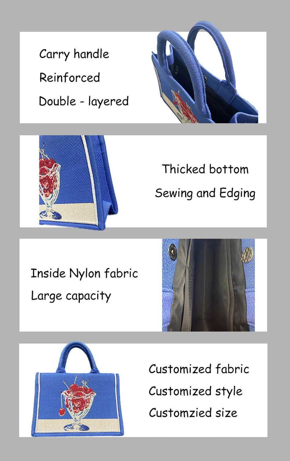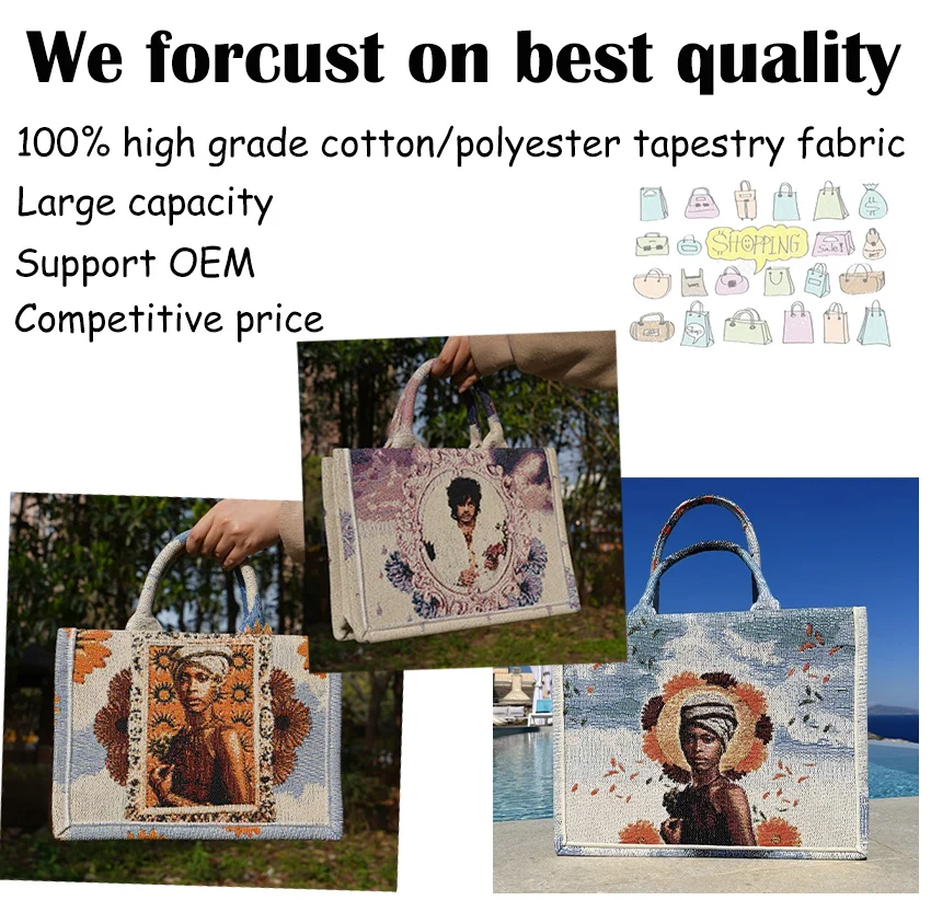 Custom Women's Woven Tapestry Canvas Tote Bag with Custom Logo for Outdoor Sports