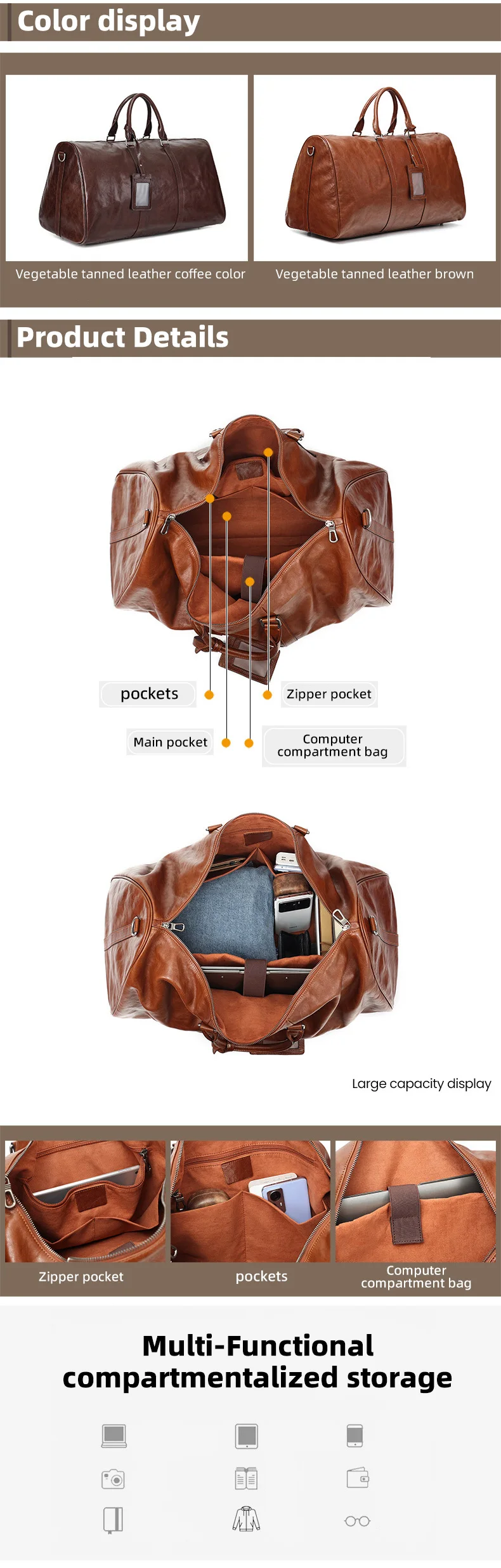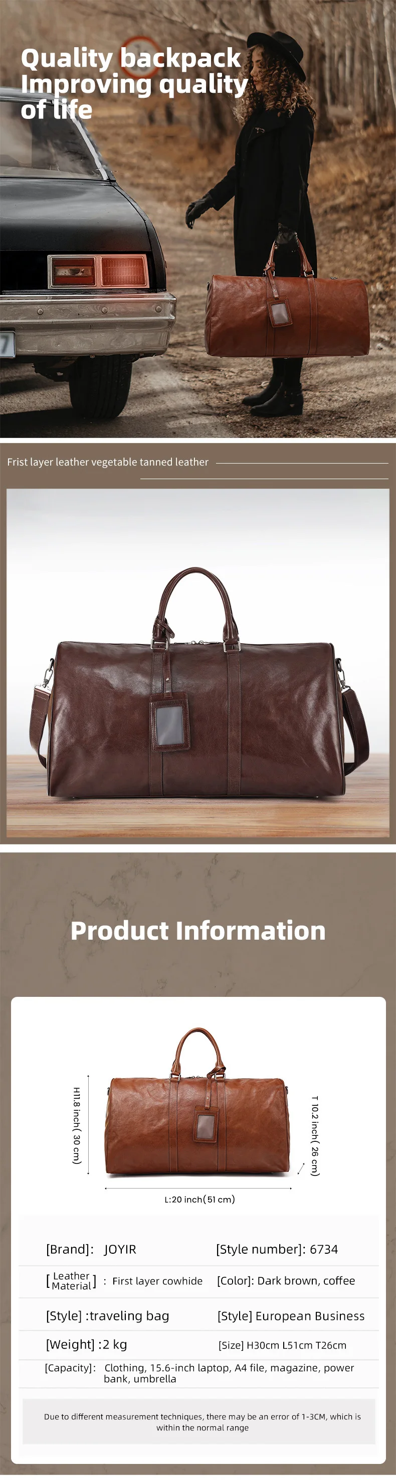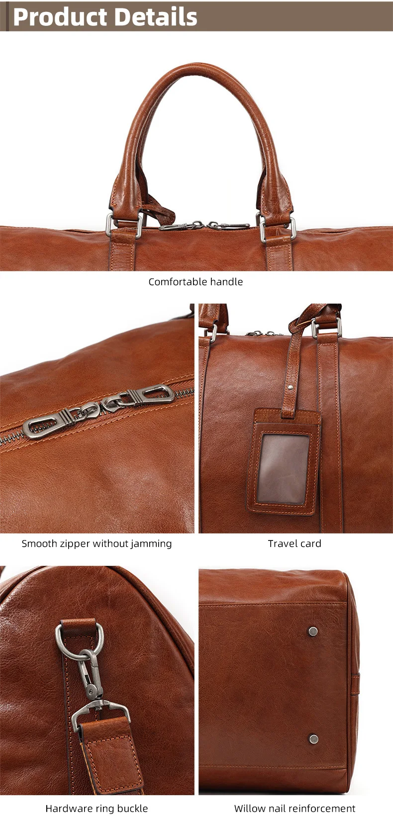 *Item name | Hot selling large capacity vegetable tanned leather travel bag business leisure genuine leather travel bag retro fitness bag | |