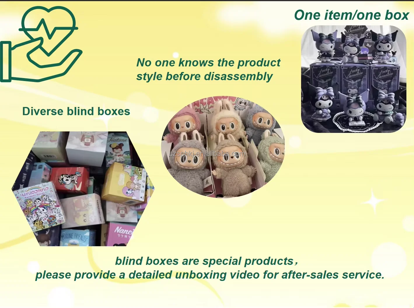 - Random Design: Blind boxes are fully random and we cannot accept requests for specific items. There chances of getting the secret edition are usually 1/72. When purchasing the whole set, there will be no duplicates figures.