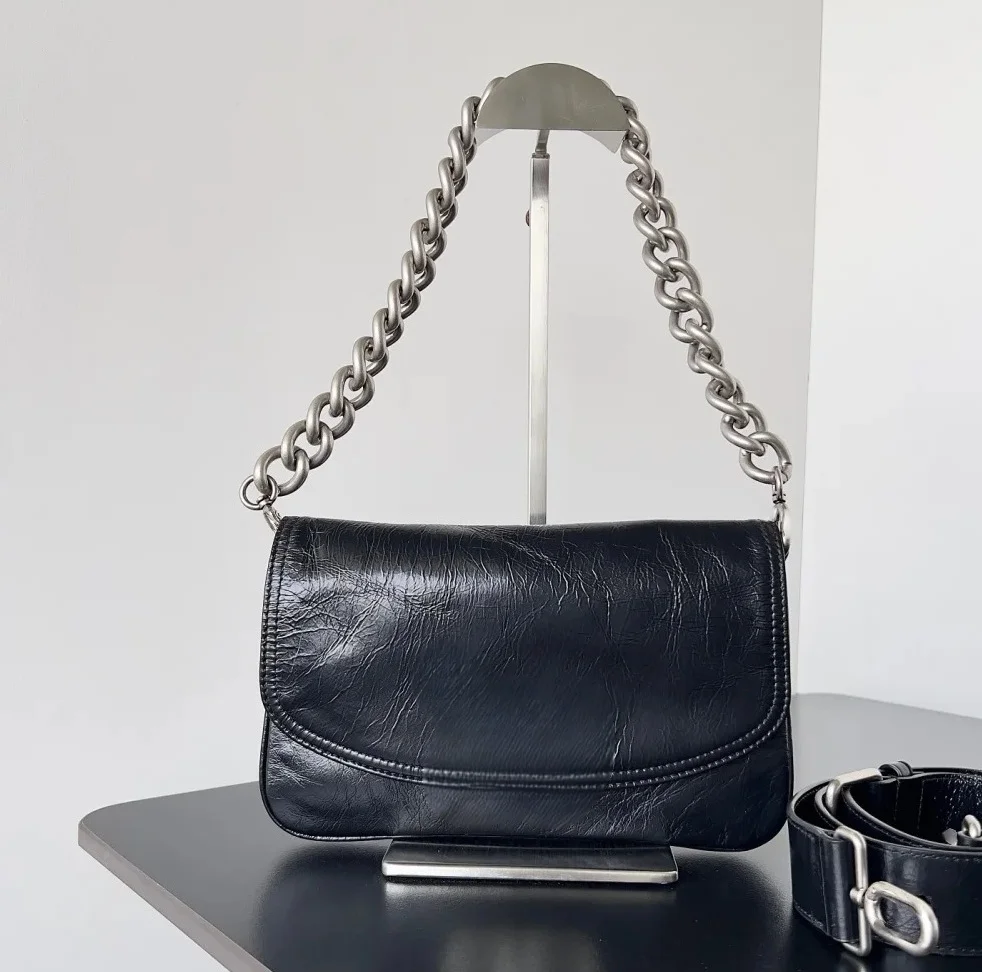 Luxurious Women's Cowhide Small Bag High Quality Black Portable Chain Handbag Black Large Tote Bag Zipper for Summer Autumn