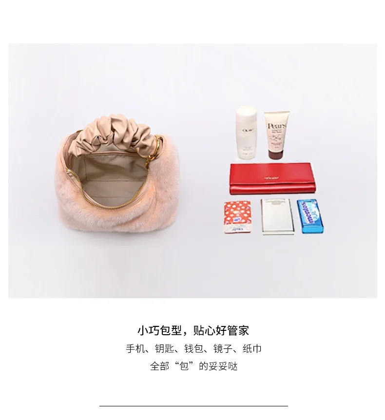 Wholesale 2023 Stylish Genuine Leather Mini Fur Tote Bag Soft Warm Handbags for Women with Fur Knot Winter Accessories