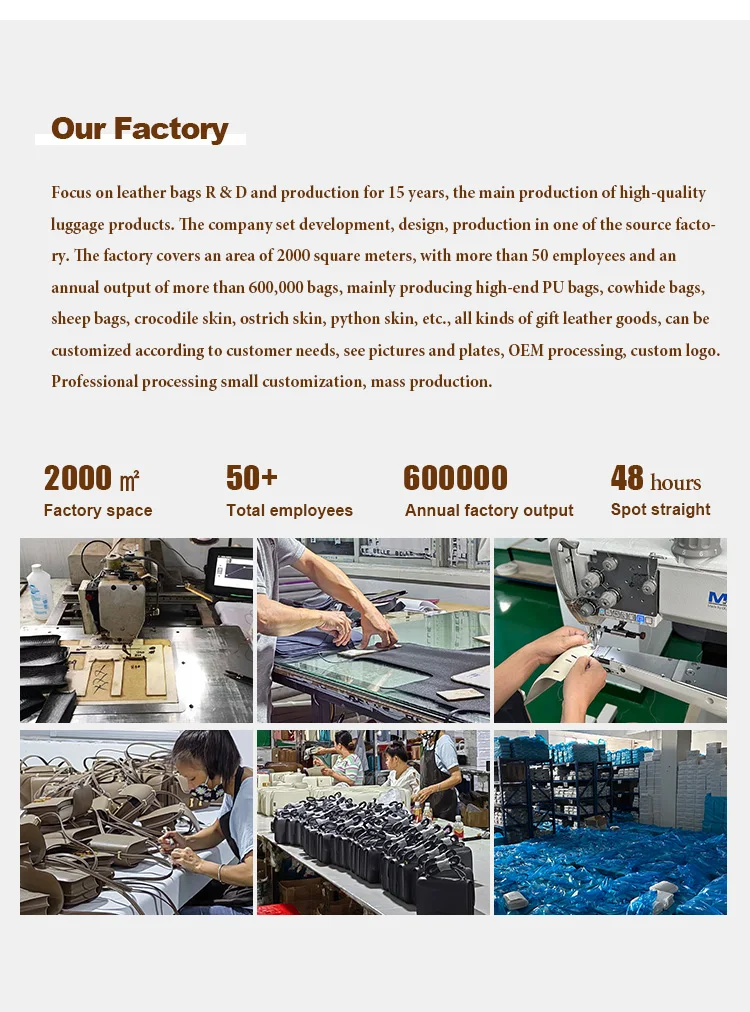 A1:Yes,we are an large factory specializing in leather bags. Our factories located in Guangzhou, China. Customers are welcome warmly to visit us.