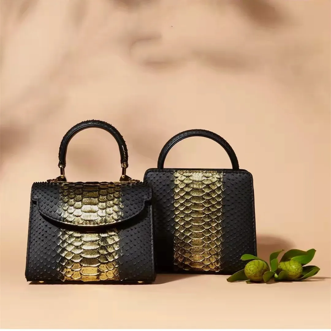 | Top Grain Leather Saly boutique Snake skin brand design satchel handbags |