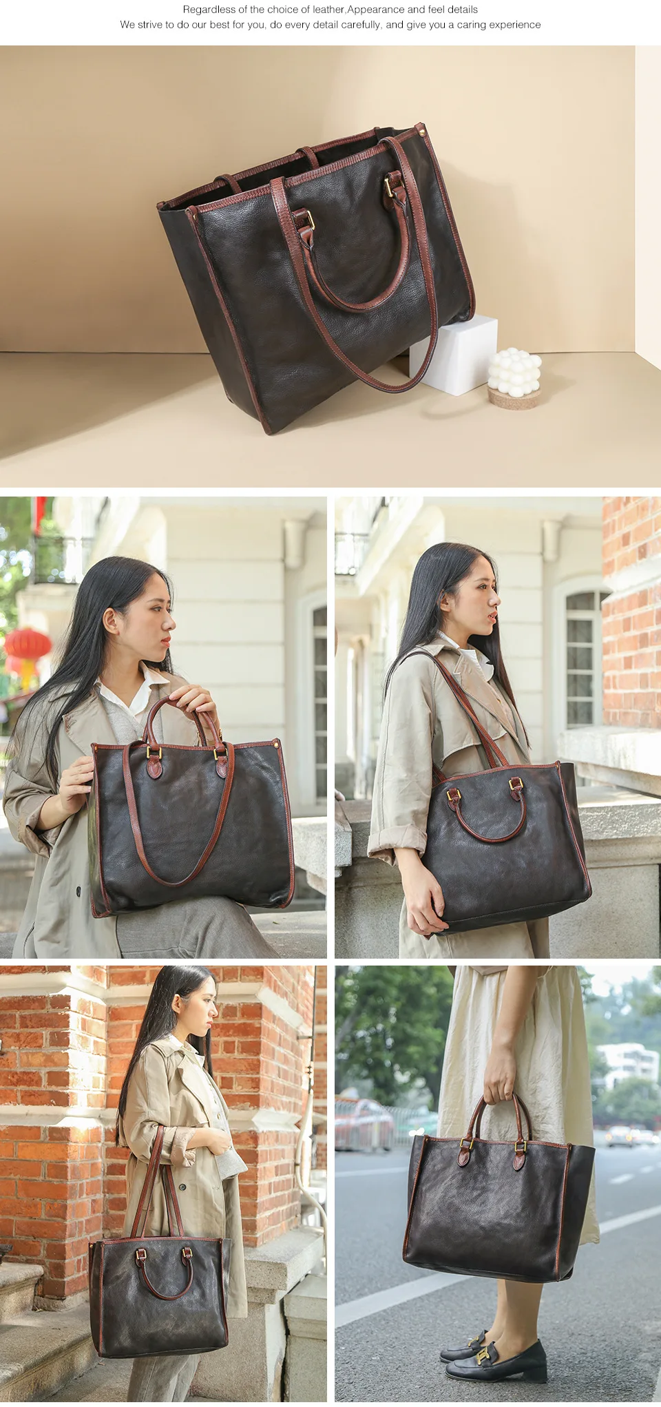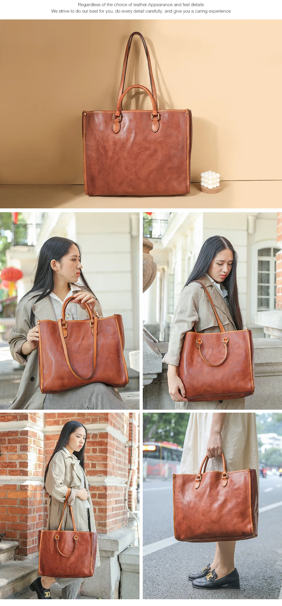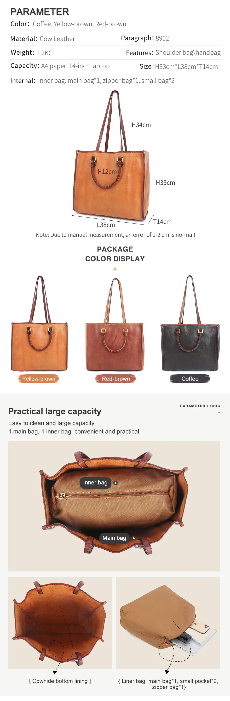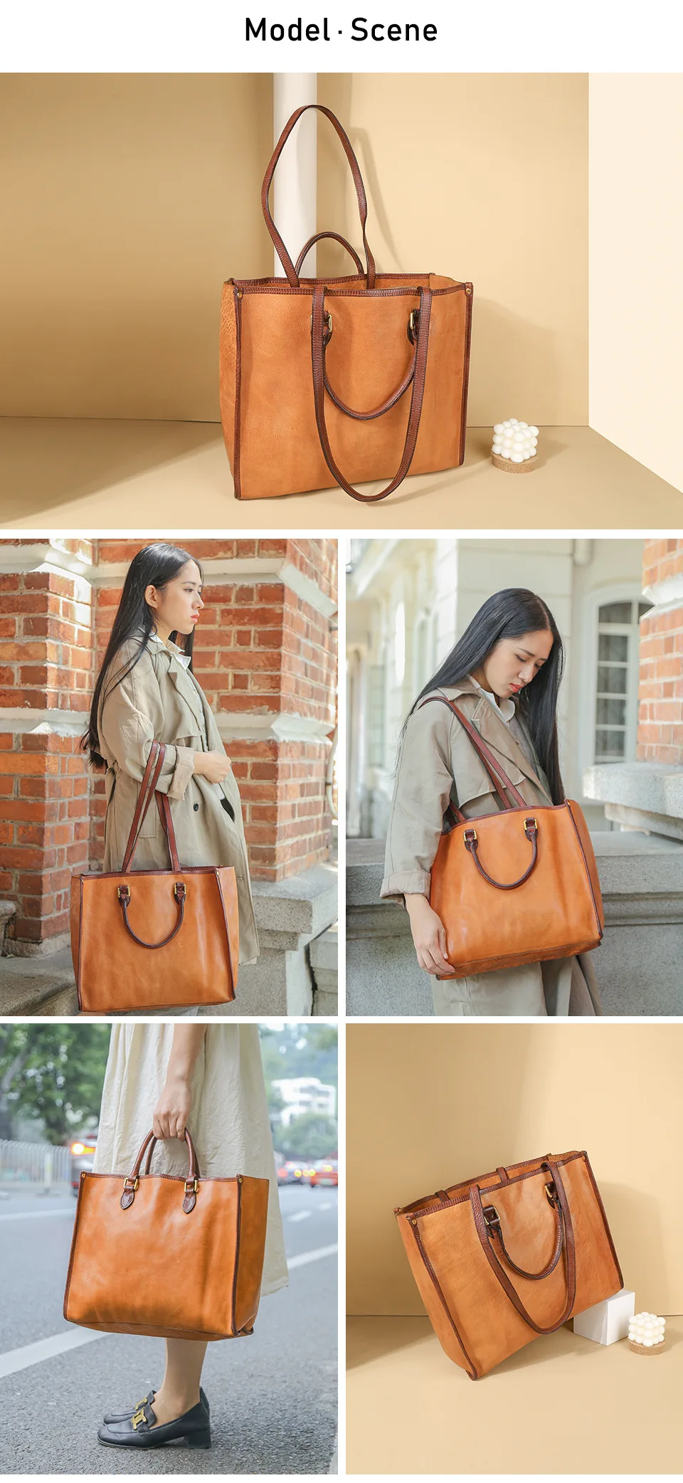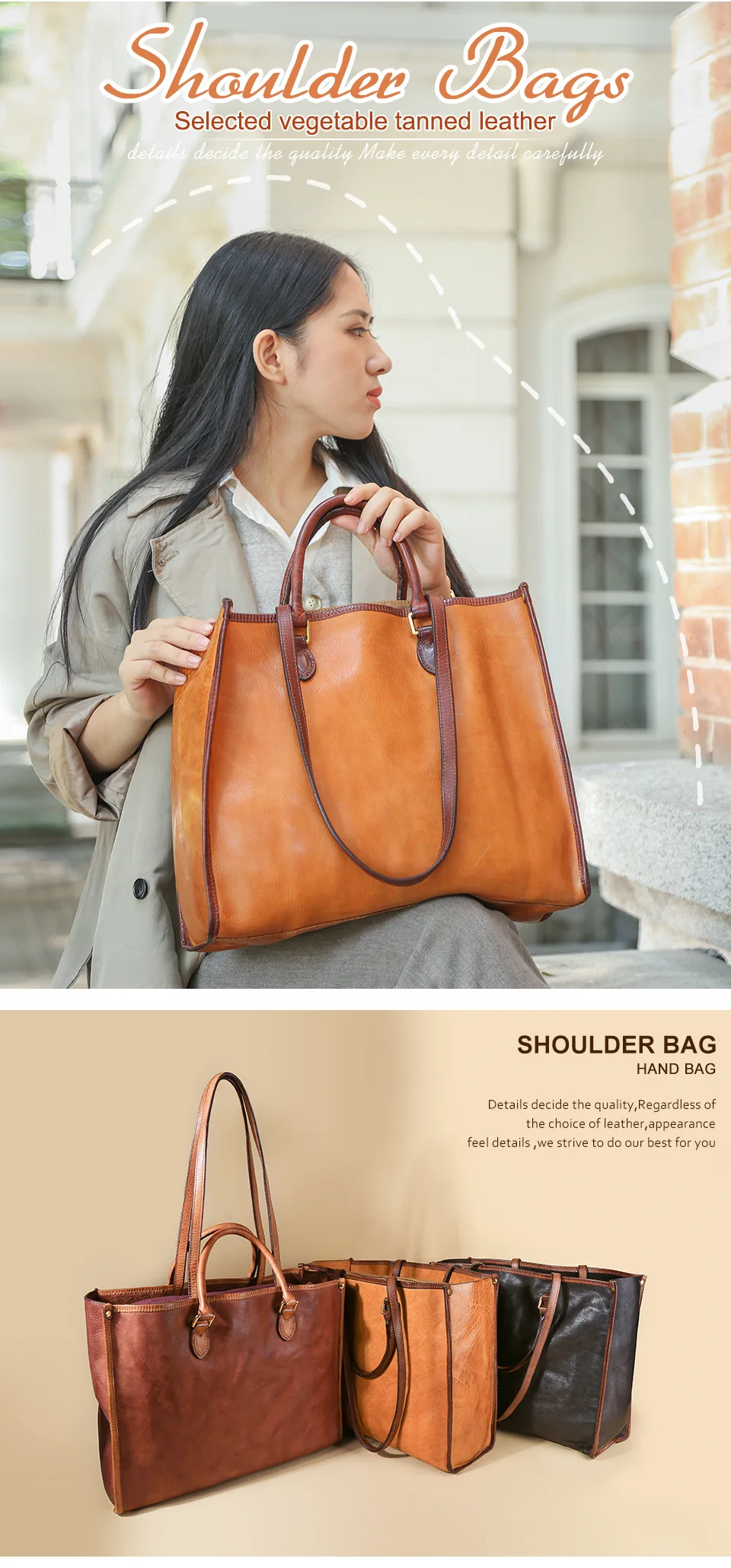 Retro Style Women's Large-Capacity Genuine Leather Crossbody Shoulder Bag Geometric Fashionable Accessory for Ladies