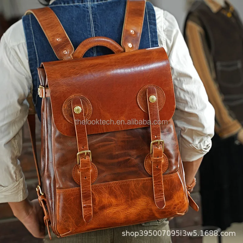 New High-end Italian High Fat Vegetable Tanned Cowhide Leather Backpack Computer Bag Student Backpack Travel Bag