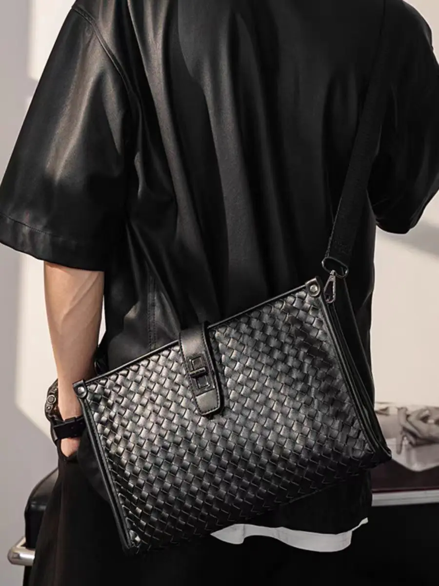 Men's Vintage Genuine Leather Crossbody Messenger Shoulder Bag Polyester Zipper Stylish Business Fashion Satchel for Hiking