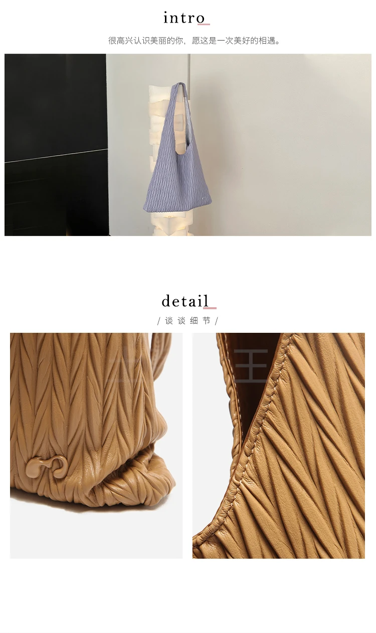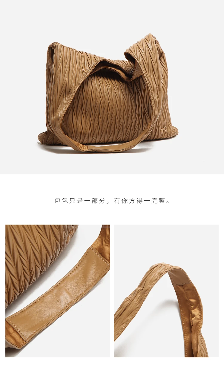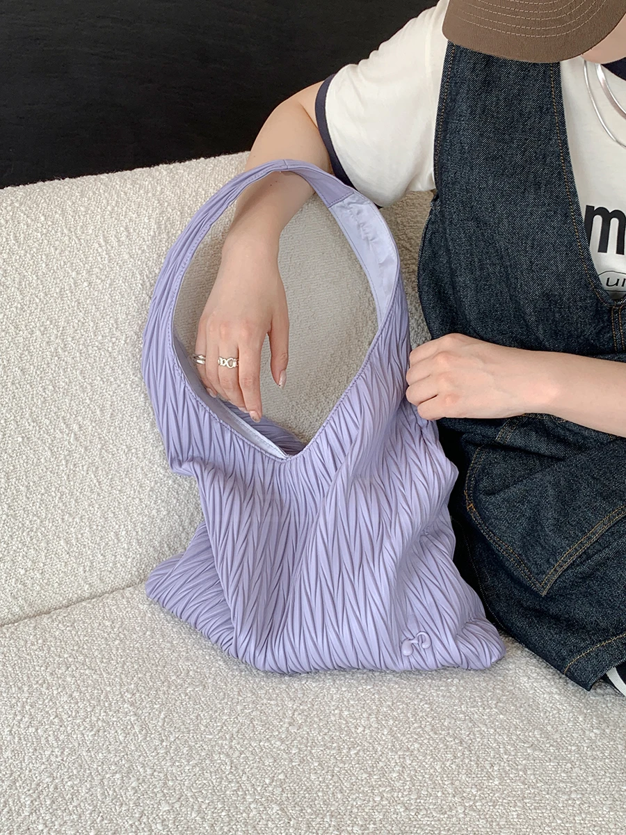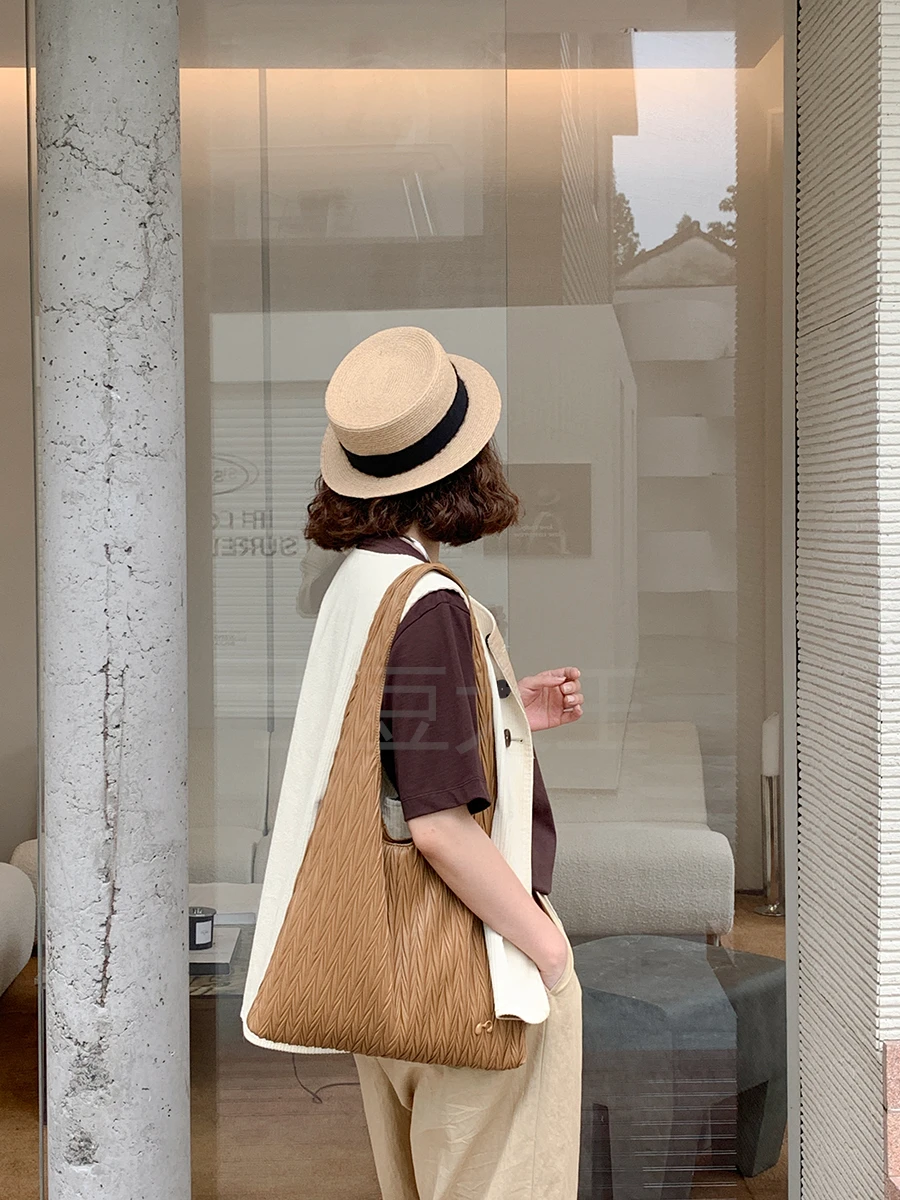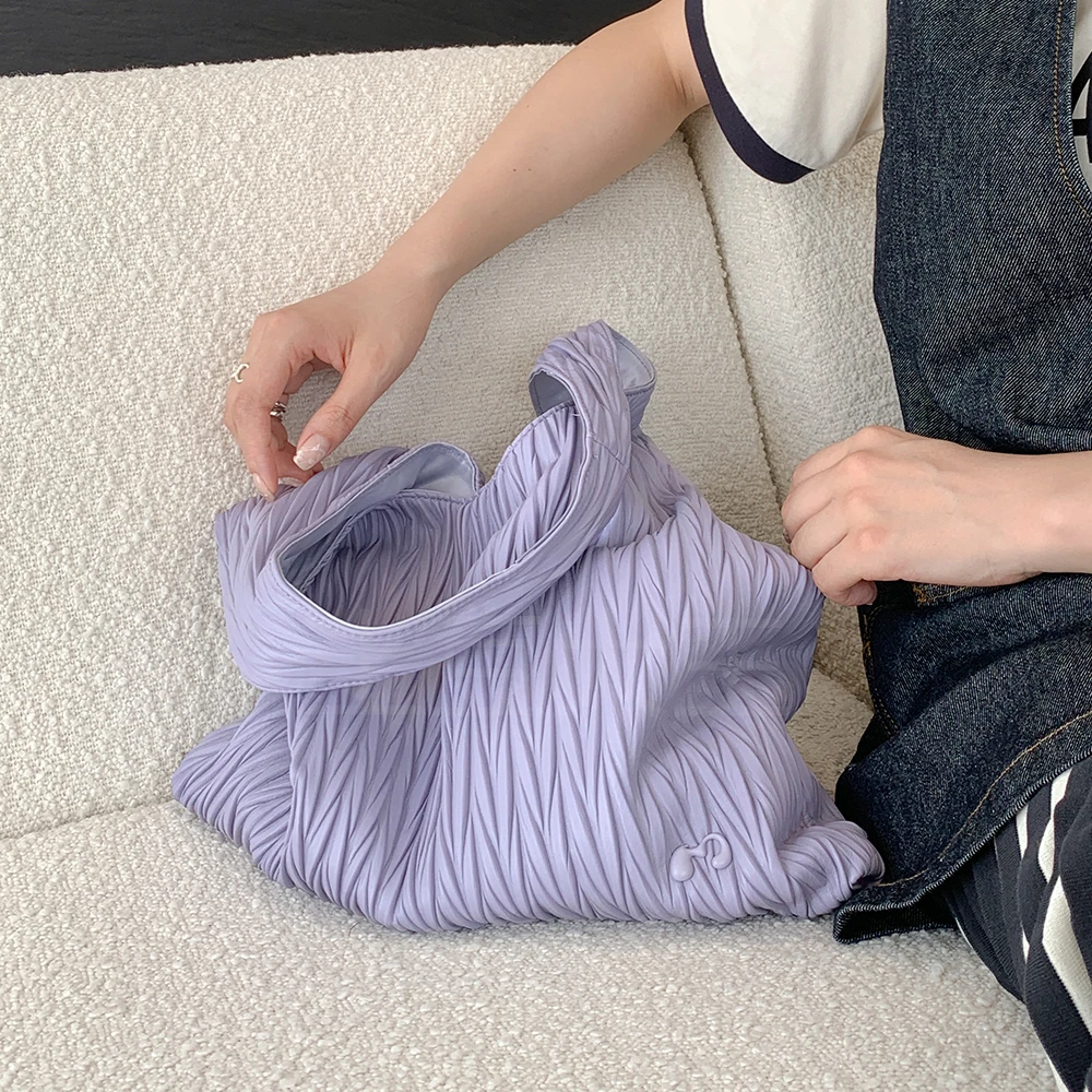 Small fresh girl loose bag pleated design simple versatile large capacity shopping bag shoulder bag