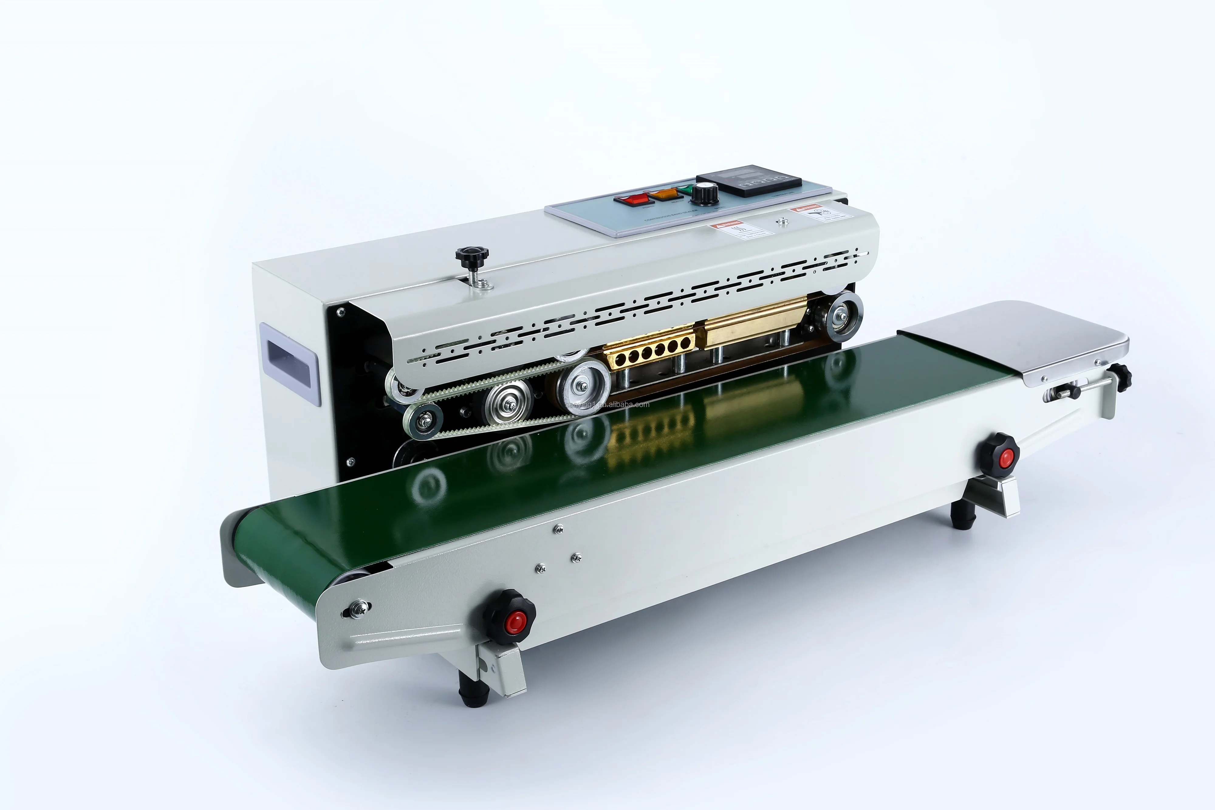 This machine adopts electric constant temperature control device and stepless speed regulation transmission mechanism,which can sealManufacture various plastic film bags of different materials,and can also be matched with various packaging linesFor sleeve use,the sealing length is not limited.This machine has continuous sealing efficiency,the sealing quality is reliable,the structure is reasonable,and the operation is convenient.Continuous sealing machineThe variety is complete,not only vertical,floor-standing,left-feeding,stainless steel chassis,etc.More double heating,wider sealing,deeper sealing,longer distance between sealing and convey or high,smart meter control,sealing width 3mm and other models can be customized.