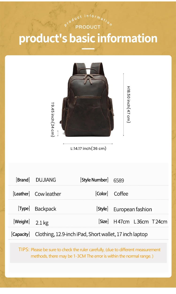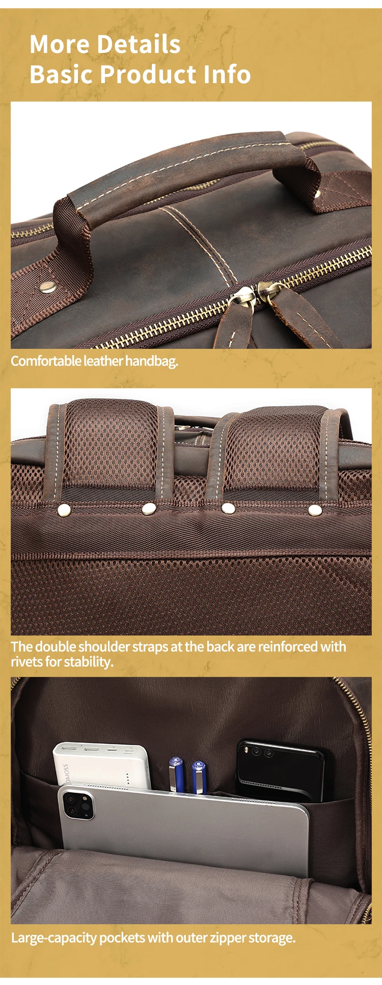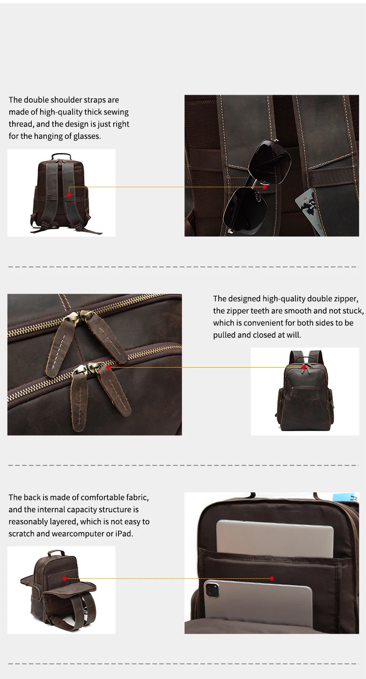 *Title | Large Capacity Retro Crazy Horse Leather Men's Backpack First Layer Cowhide for Business Travel Fashionable Accessories | |