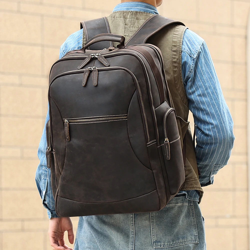 Large Capacity Retro Crazy Horse Leather Men's Backpack First Layer Cowhide for Business Travel Fashionable Accessories