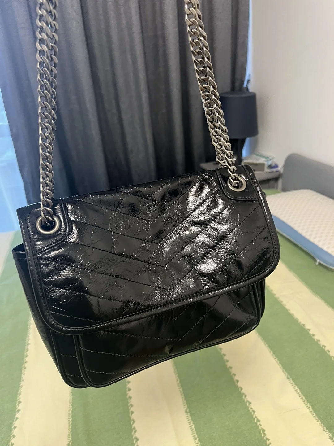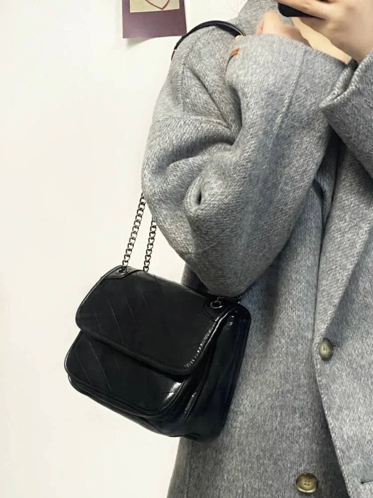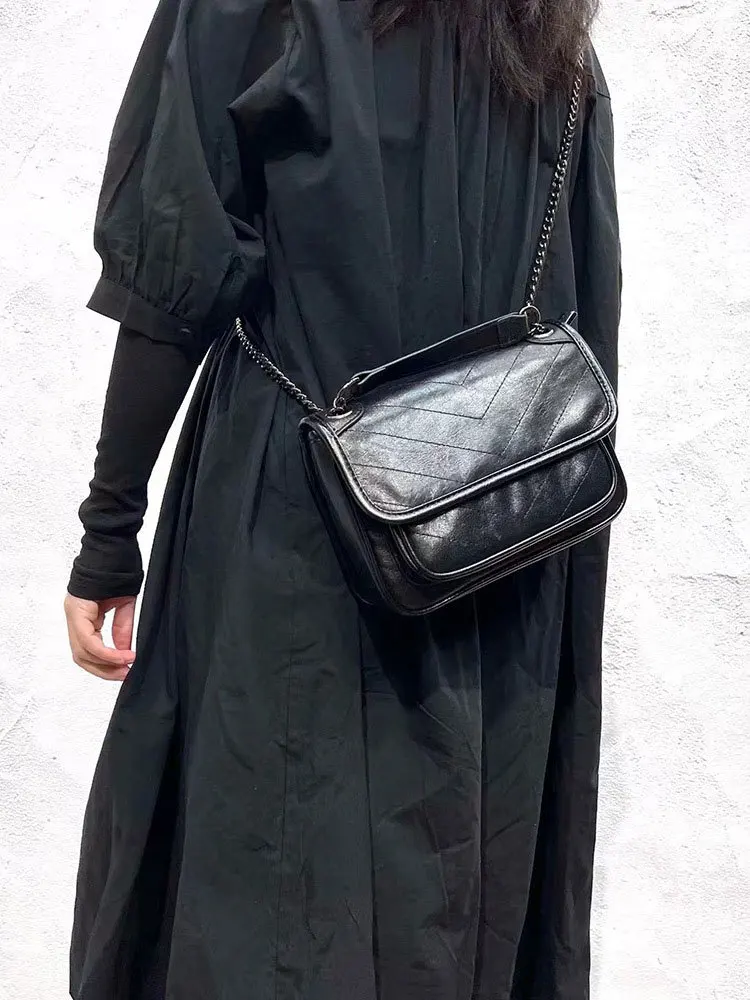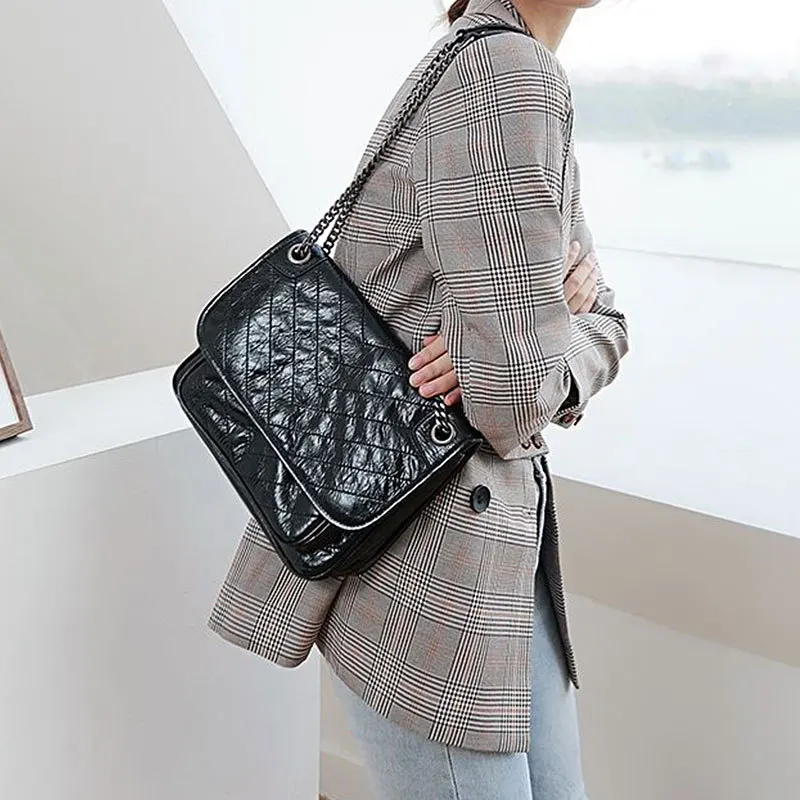Retro Oil Wax Cowhide Women's Wandering Bag Chain Niki Messenger Bag Single Shoulder Crossbody Waterproof Cover Fashion Style