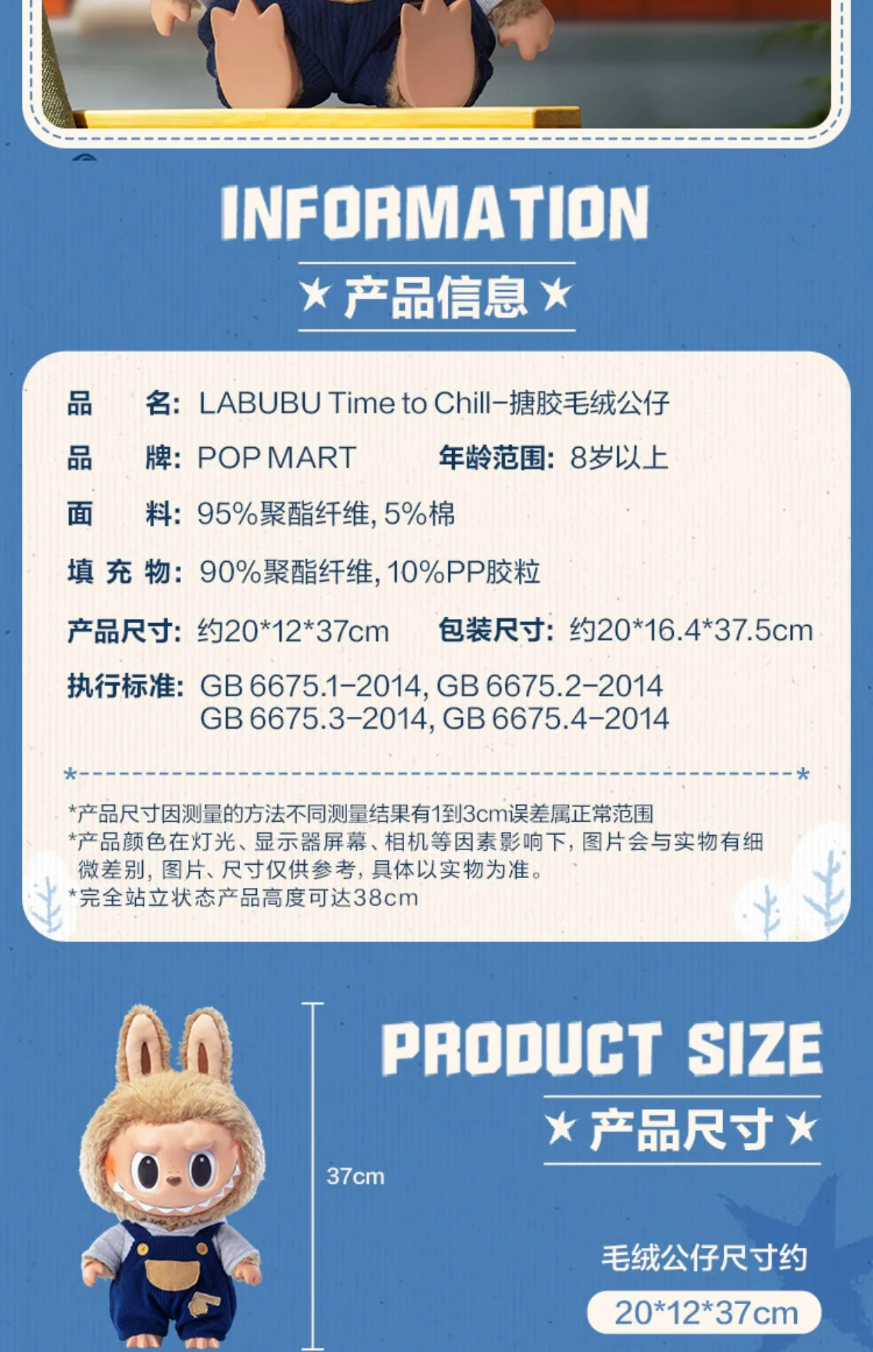 Wholesale 100% Original PopMart the MONSTERS TIME to CHILL LABUBU Vinyl Plush Doll Cute 37cm Big Toys Unique Creative Gift