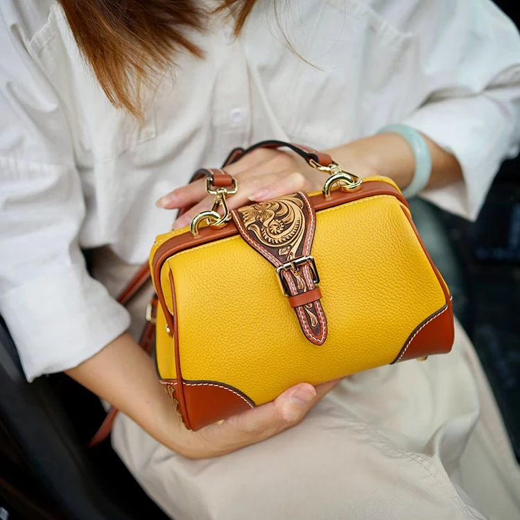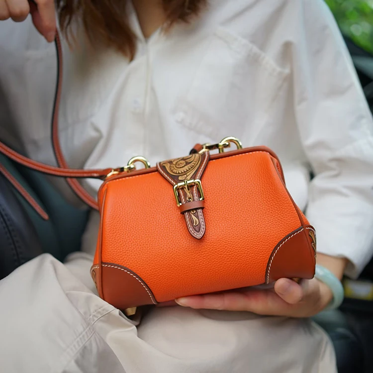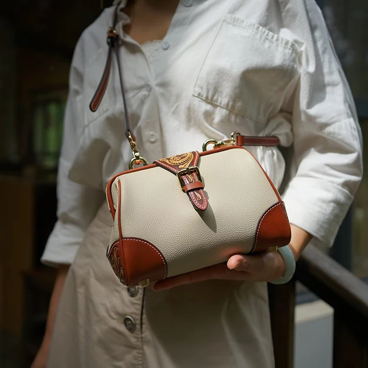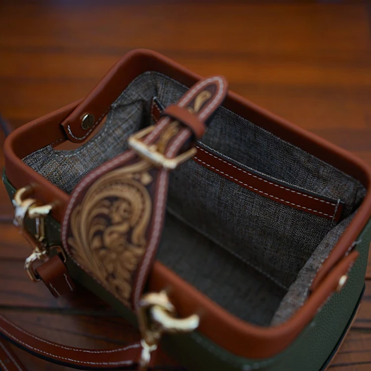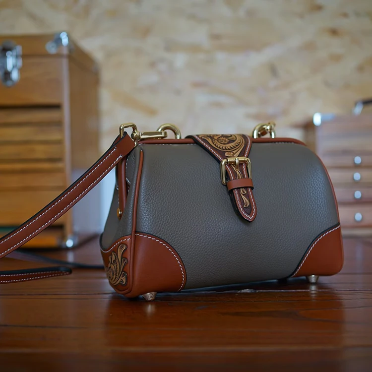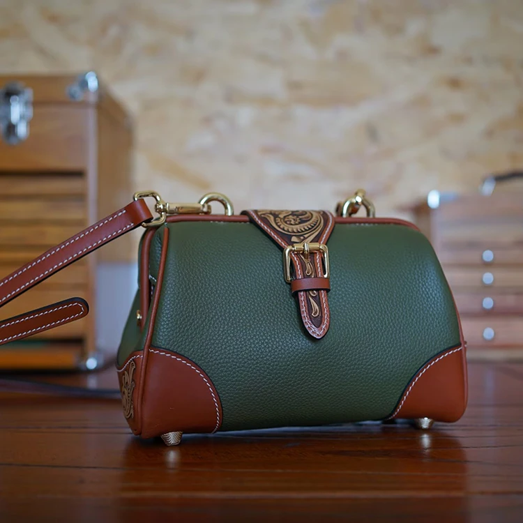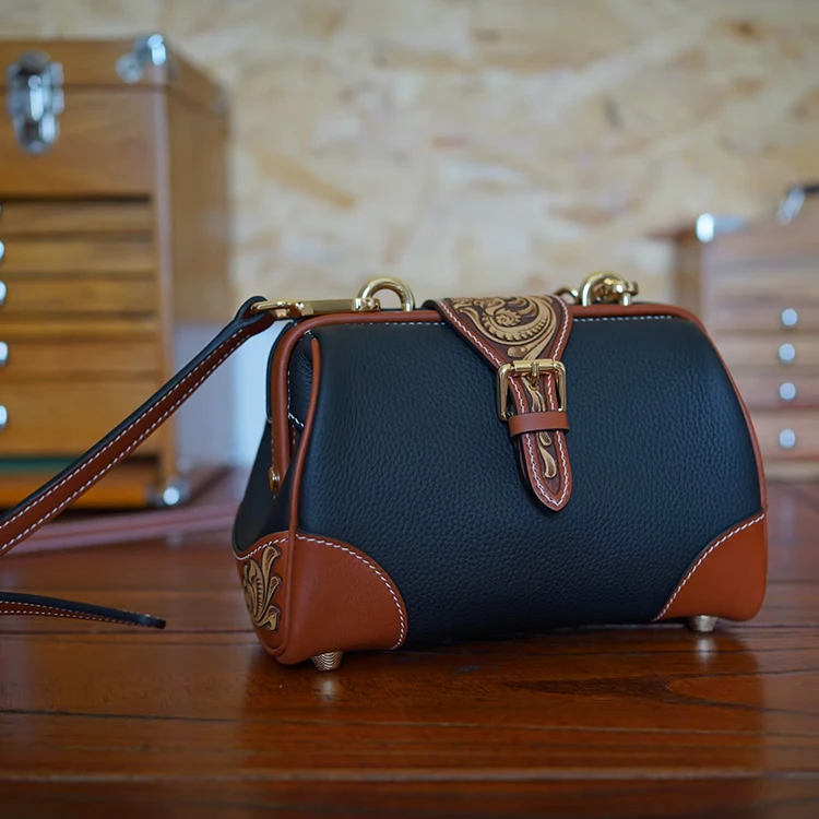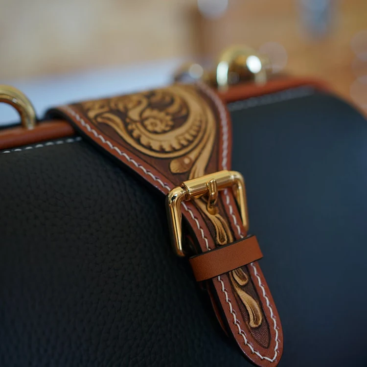 SNAIL Handmade Leather Handbag Floral Crossbody Rel Cowhide Hand Tooled Cowhide Women Fashion Bag Shoulder Bag