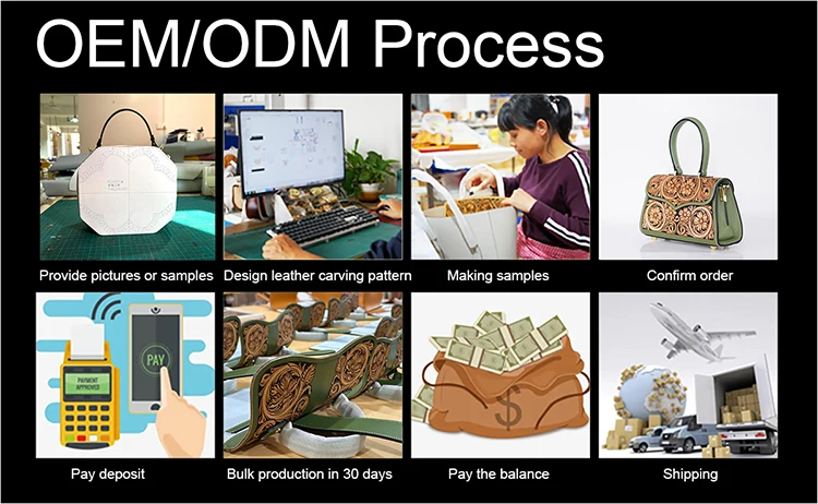 A: We are factory, owning over 100 skilled craftsmen. Our main products are various leather carving bags for women, men, belts and other leather carving products