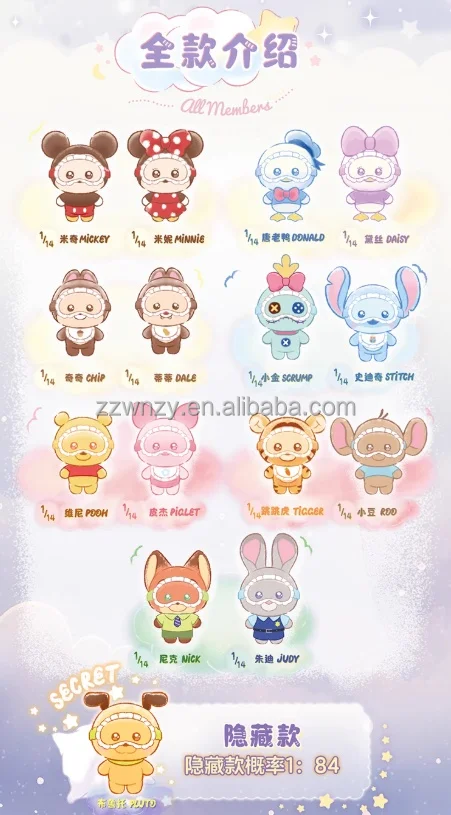 New Genuine High Quality Official Store Top Toy Brand New Dis Ney Sleepy Eye Plush Hangings Collection Series Blind Box