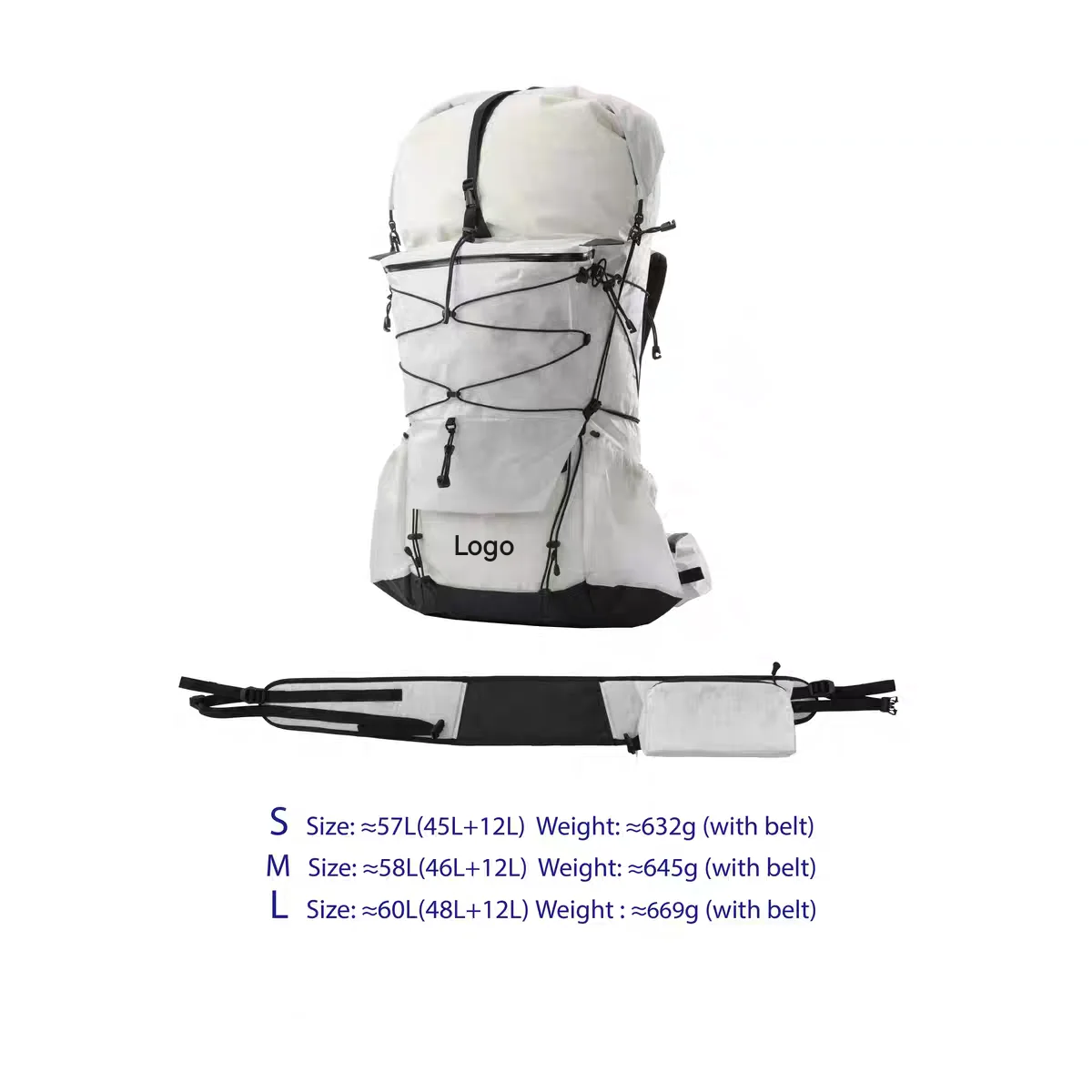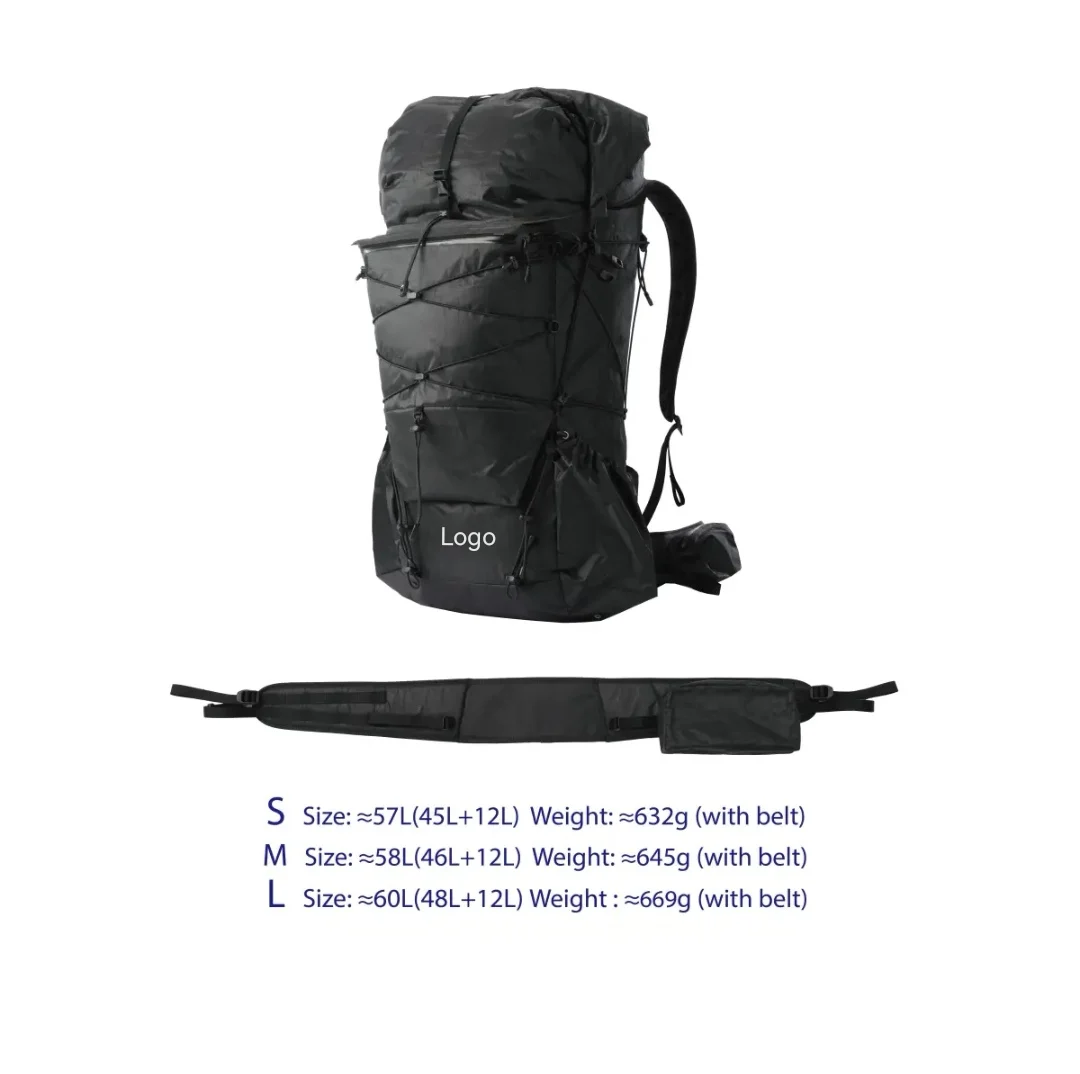 Customized Outdoor Waterproof Lightweight Dyneema Composite Fabric Travel Trekking Camping Hiking Backpack High-capacity Bag