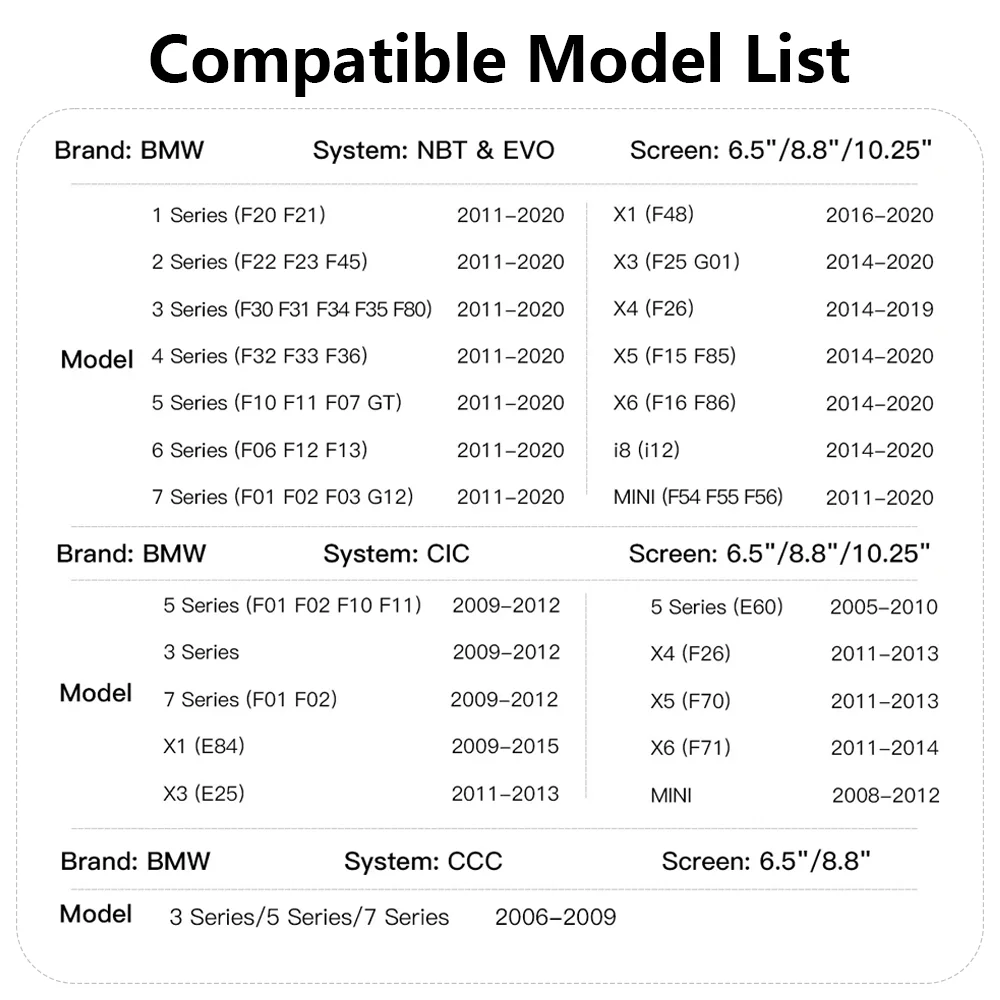 Wireless Apple CarPlay Android Auto Decoder for BMW NBT CIC EVO System F10 F20 F30 F15 F25 E60 E90 X1 X3 X4 X5 X6 MINI COOPER