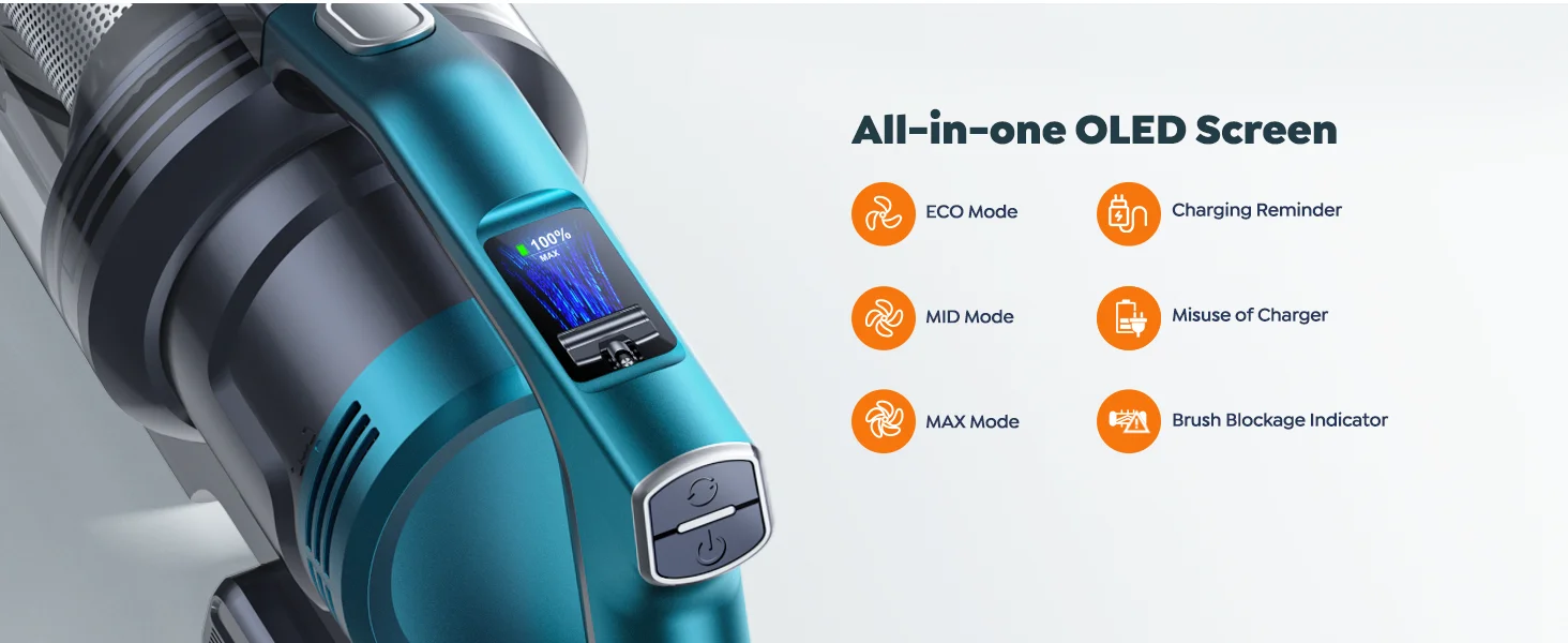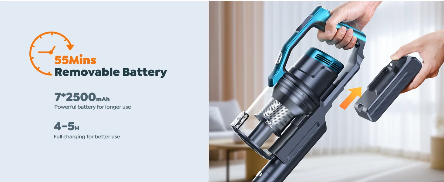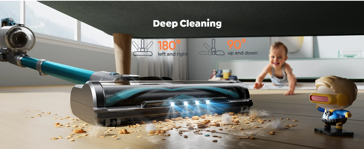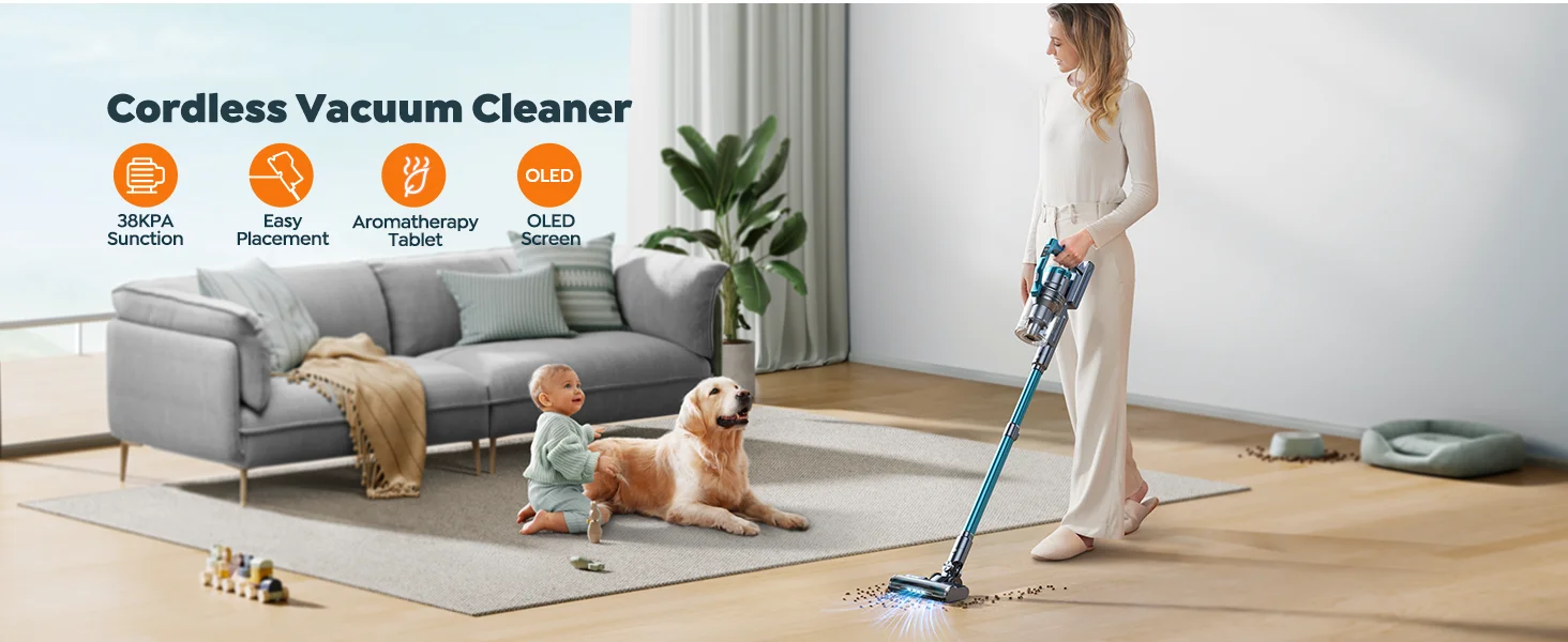 In Stock Buture VC60 450W 38KPA Suction 1.5L Handheld Carpet Stick Wireless Cordless Vacuum Cleaner for Carpet with LED Light