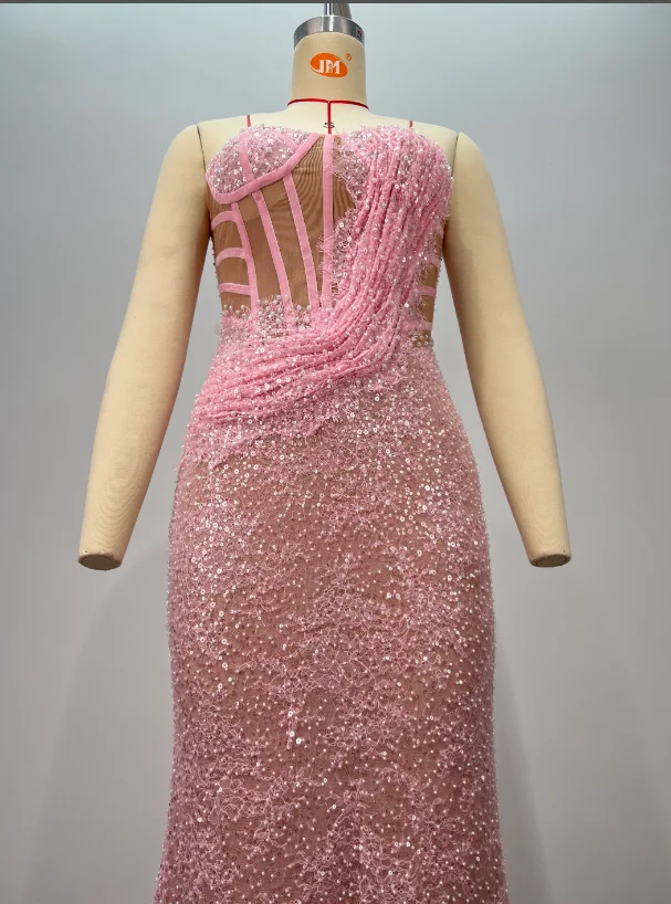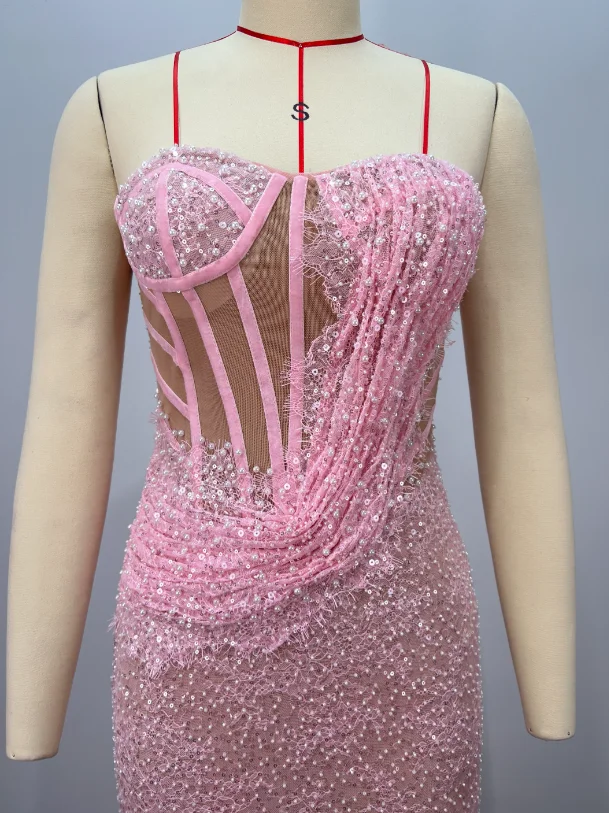 ED2787 Kimshein Fashion High Quality Princess Strapless Pearls Sequins Evening Party Dress Luxurious Prom Dresses