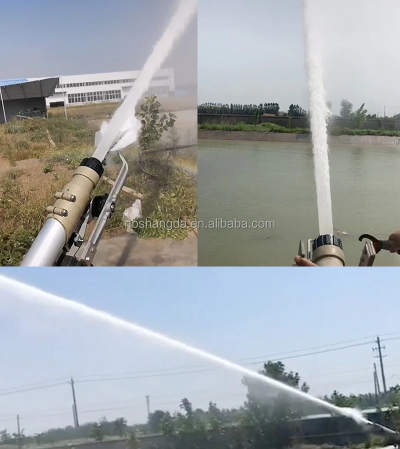 Feature and Application | >Rain gun in the length 113cm, with long shoot distance up to 78m; >With adjustable elevation angle from 16-46 degree; >With different nozzle for choice, with long range; >With 0-360 rotary angle adjusatable; >With adjustable rotating speed; >With adjustable water diffuser; >With adjustable arm speed; >Durable, all parts chosen the high quality material, and fine workship, more durable, with stable performance, uniform spray; >Free accessories go with the sprinkler, including wrench, nozzle, rubber ring, and flange connection; >Widely used in farmland irrigation or industrial dedusting; |