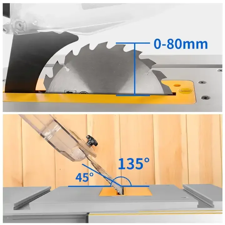 1,Available micro-adjustment of blade so that it is parallel to rip fence and miter slot.