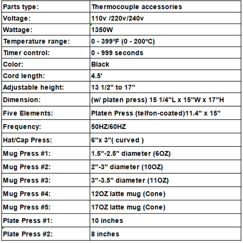 10 IN 1 NEW DESIGN COMBO HEAT PRESS MACHINE = 5 PCS mug press pad (different size) + 1 set hat press pad + 1 set flat T-shirt pres pad + 2 PCS plate press machine